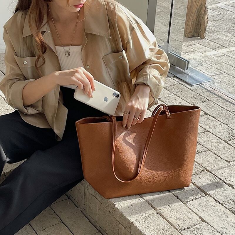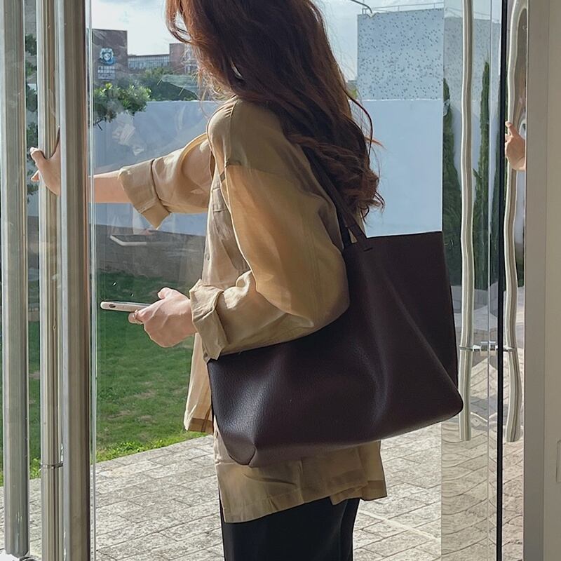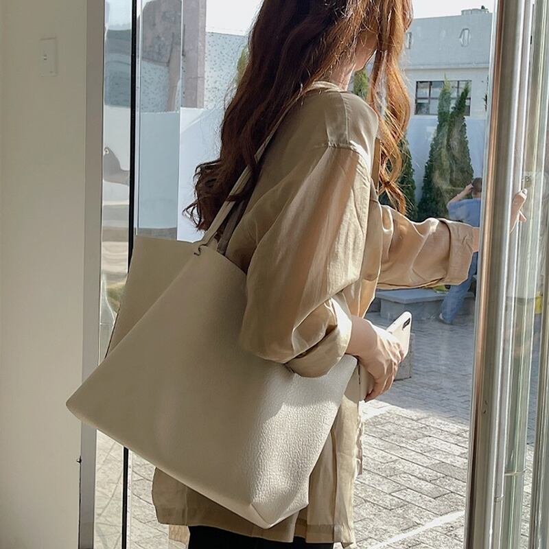 シンプルながら上品さを感じるデザインの肩掛けバッグ。やや細めの持ち手が女性らしい印象を演出します。しっかりとしたサイズ感で収納力も抜群。書類やポーチなどをすっきり収納でき、デイリーから通勤まで幅広く活躍します。便利なポーチ付きで、バッグの中を整理整頓しながらおしゃれに持ち歩けます。 ................................................. ■ color white , ivory , camel , dark brown , black ■ material PU ■ size one size 横幅:30cm 高さ:26.5cm マチ:16cm ショルダーベルト長さ:55cm ※採寸方法により多少の誤差がある場合がございます [ 商品管理番号:i-0345 ] ▼ blanks人気ランキング https://www.blanksonline.shop/categories/3622302 ▼ 新商品・SALE情報をチェック! https://www.blanksonline.shop/ ▼ Instagram https://www.instagram.com/blanks.official/ ▶ ご購入時こちらを必ずお読みくださいませ 【 お買い物にあたってのご注意事項 】 https://www.blanksonline.shop/blog/2020/12/17/145916