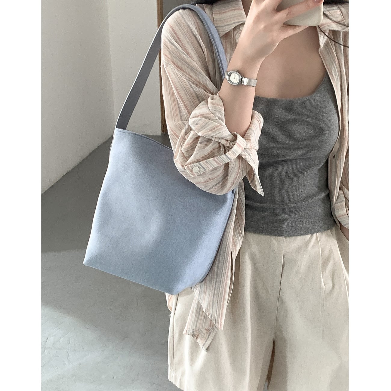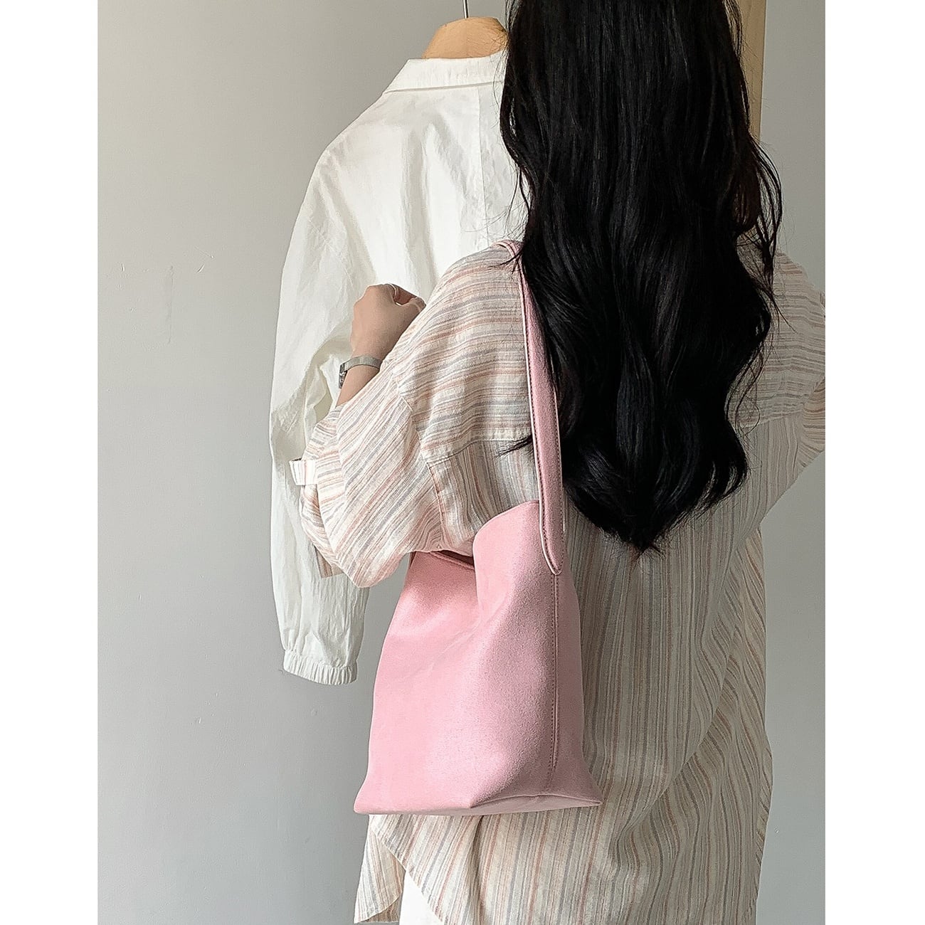 持ちやすさと使いやすさに配慮したデザインが魅力の、バケットショルダーバック。 マグネットタイプで開閉しやすく、使いやすいのも嬉しいアイテム◎ 長財布やスマホ、小物など必要な荷物がきれいに収まるサイズ感です。 ................................................. ■ color ivory , pink , blue , green , black ■ material スエード ポリエステル ■ size one size 横幅:17cm 高さ:25cm マチ:14cm ショルダーベルト長さ:56.5cm ※採寸方法により多少の誤差がある場合がございます [ 商品管理番号: i-0375] ▼ blanks人気ランキング https://www.blanksonline.shop/categories/3622302 ▼ 新商品・SALE情報をチェック! https://www.blanksonline.shop/ ▼ Instagram https://www.instagram.com/blanks.official/ ▶ ご購入時こちらを必ずお読みくださいませ 【 お買い物にあたってのご注意事項 】 https://www.blanksonline.shop/blog/2020/12/17/145916