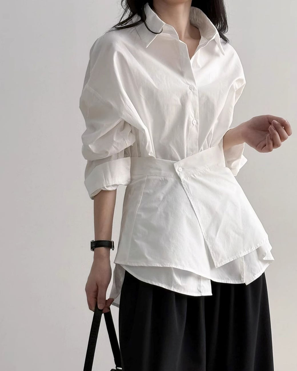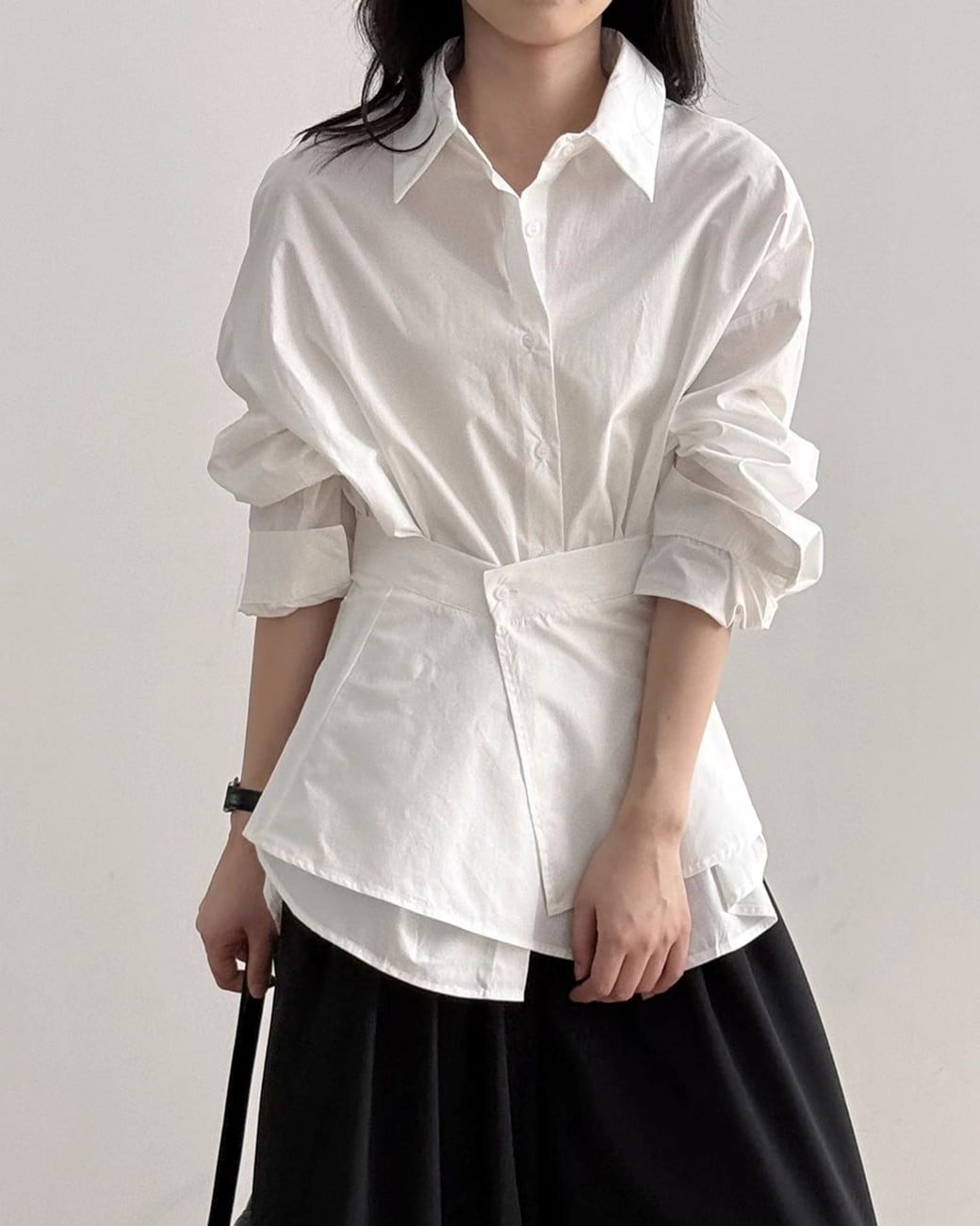 レギュラーカラーのシャツに、取り外し可能なエプロンデザインをプラス。ウエストでシルエットの変化が楽しめ、1枚で印象を変えられる着回し力抜群のアイテムです。 ................................................. ■ color white , stripe ■ material コットン ■ size M , L M:肩幅 56cm 袖丈 52cm 胸囲 124cm 着丈 71-77cm L: 肩幅 57cm 袖丈 53cm 胸囲 128cm 着丈 72-78cm ※採寸方法により多少の誤差がある場合がございます [ 商品管理番号:i-0418 ] ▼ blanks人気ランキング https://www.blanksonline.shop/categories/3622302 ▼ 新商品・SALE情報をチェック! https://www.blanksonline.shop/ ▼ Instagram https://www.instagram.com/blanks.official/ ▶ ご購入時こちらを必ずお読みくださいませ 【 お買い物にあたってのご注意事項 】 https://www.blanksonline.shop/blog/2020/12/17/145916