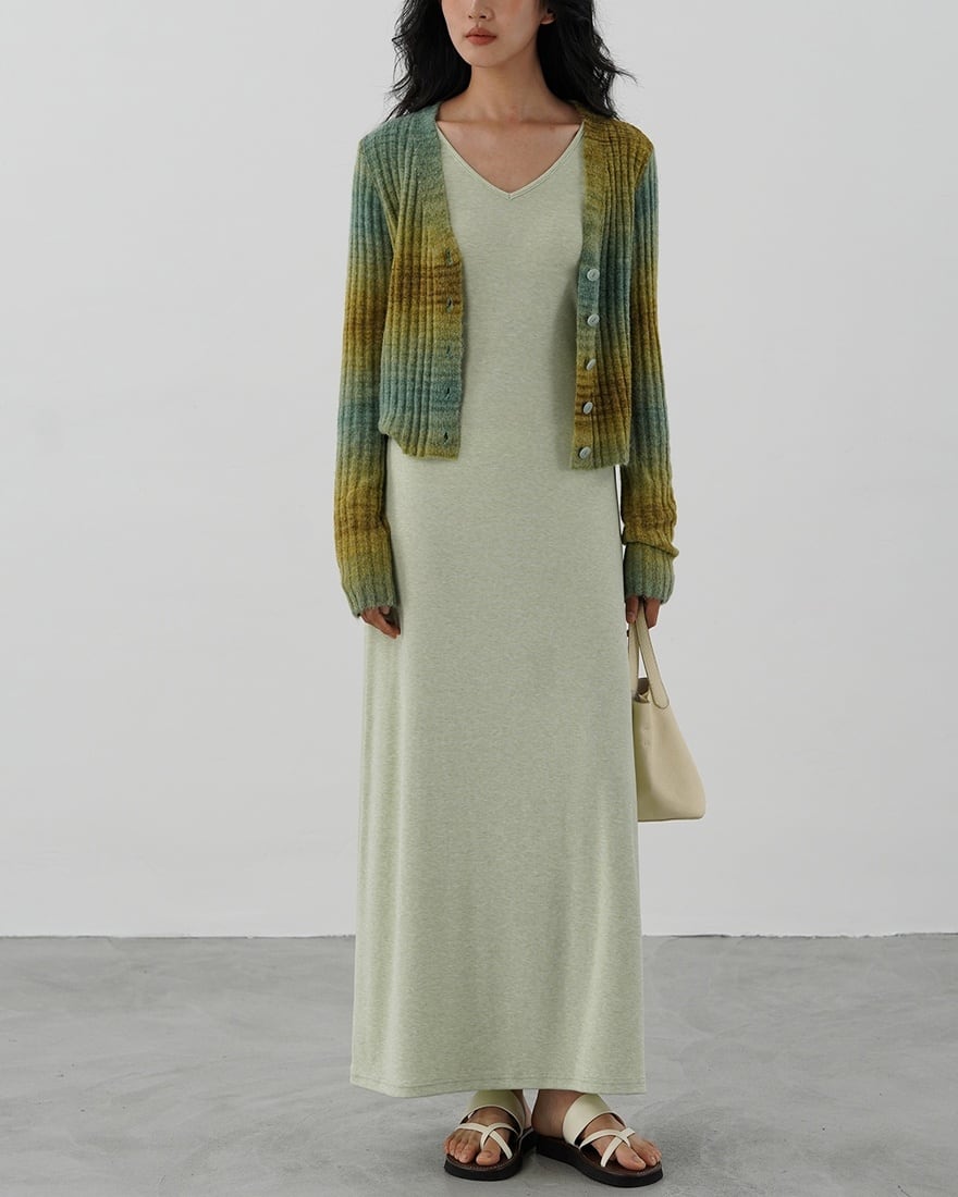 スリムなラインに緩やかな裾の広がりが美しいロングワンピース。深めのVネックがデコルテをきれいに見せ、長袖で品のある印象に。優しいグリーンカラーが女性らしさを引き立てます。裾は緩やかに広がり、動くたびに美しく揺れます。 ................................................. ■ color light green ■ material ポリエステル ビスコース ナイロン スパンデックス ■ size S , M , L , XL S: 肩幅 36cm 袖丈 62cm 胸囲 74cm 着丈 130cm M: 肩幅 37cm 袖丈 63cm 胸囲 78cm 着丈 131.5cm L: 肩幅 38.5cm 袖丈 64cm 胸囲 83cm 着丈 133.5cm XL: 肩幅 40cm 袖丈 65cm 胸囲 88cm 着丈 135.5cm ※採寸方法により多少の誤差がある場合がございます ■ モデル身長:167cm [ 商品管理番号:j-0014 ] ▼ blanks人気ランキング https://www.blanksonline.shop/categories/3622302 ▼ 新商品・SALE情報をチェック! https://www.blanksonline.shop/ ▼ Instagram https://www.instagram.com/blanks.official/ ▶ ご購入時こちらを必ずお読みくださいませ 【 お買い物にあたってのご注意事項 】 https://www.blanksonline.shop/blog/2020/12/17/145916