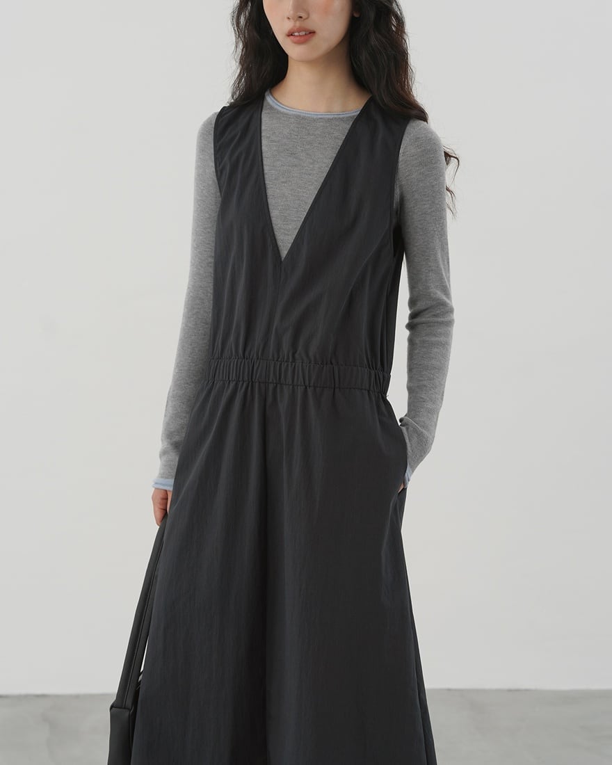 深めのVネックがすっきりとした印象を与えるロングワンピース。シャツや細身のトップスを重ねるだけで、こなれたレイヤードスタイルが完成。シックなブラックで大人の着こなしに。 ................................................. ■ color black ■ material ナイロン コットン スパンデックス ■ size S , M , L , XL S: 肩幅 33.5cm ウエスト 86cm 胸囲 91cm 着丈 121.5cm M: 肩幅 34.5cm ウエスト 90cm 胸囲 95cm 着丈 123cm L: 肩幅 36cm ウエスト 95cm 胸囲 100cm 着丈 125cm XL: 肩幅 37.5cm ウエスト 100cm 胸囲 105cm 着丈 127cm ※採寸方法により多少の誤差がある場合がございます ■ モデル身長:168cm [ 商品管理番号:j-0016 ] ▼ blanks人気ランキング https://www.blanksonline.shop/categories/3622302 ▼ 新商品・SALE情報をチェック! https://www.blanksonline.shop/ ▼ Instagram https://www.instagram.com/blanks.official/ ▶ ご購入時こちらを必ずお読みくださいませ 【 お買い物にあたってのご注意事項 】 https://www.blanksonline.shop/blog/2020/12/17/145916