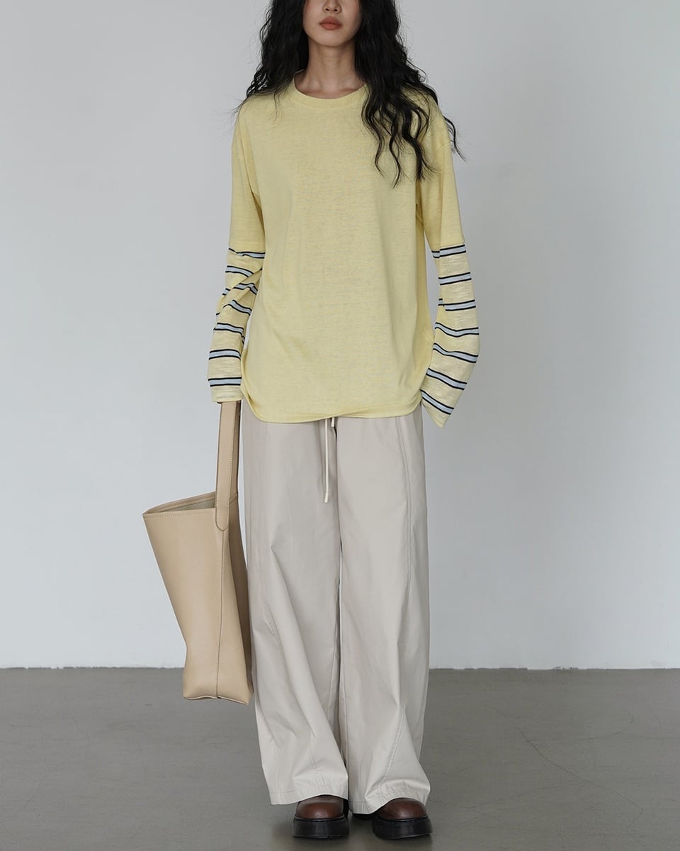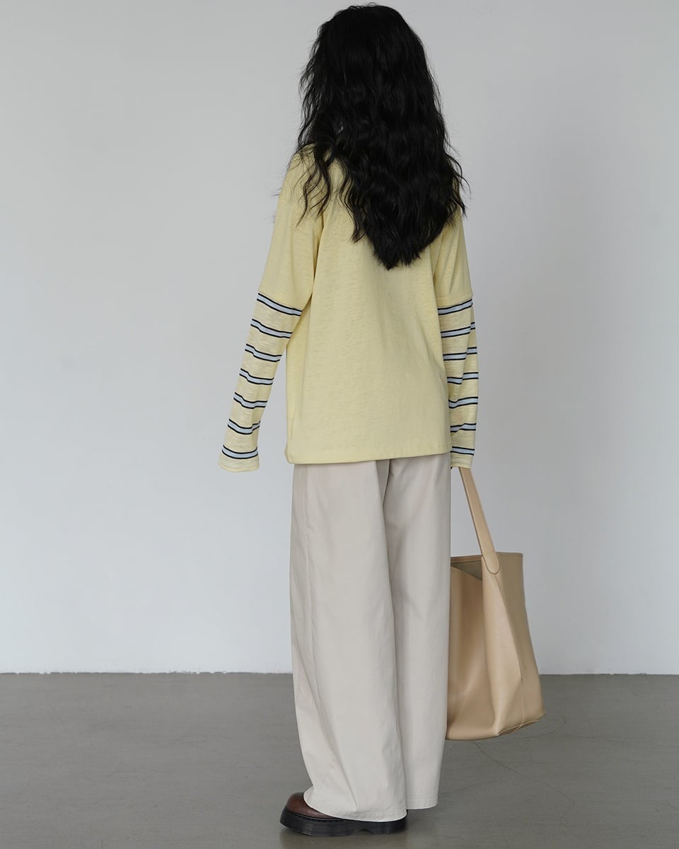 ボディは無地でシンプルに、袖部分にさりげなくボーダーを施した長袖カットソー。ブルーとイエローの2色展開で、どちらも明るく洗練された印象に。大人カジュアルな着こなしに程よいアクセントを加えてくれます。 ................................................. ■ color yellow , blue ■ material コットン ポリエステル ビスコース ■ size S , M , L , XL S: 肩幅 56cm 袖丈 55cm 胸囲 106cm 着丈 67.5cm M:肩幅 57cm 袖丈 56cm 胸囲 110cm 着丈 69cm L: 肩幅 58.5cm 袖丈 57cm 胸囲 115cm 着丈 71cm XL: 肩幅 60cm 袖丈 58cm 胸囲 120cm 着丈 73cm ※採寸方法により多少の誤差がある場合がございます ■ モデル身長:167cm [ 商品管理番号:j-0023 ] ▼ blanks人気ランキング https://www.blanksonline.shop/categories/3622302 ▼ 新商品・SALE情報をチェック! https://www.blanksonline.shop/ ▼ Instagram https://www.instagram.com/blanks.official/ ▶ ご購入時こちらを必ずお読みくださいませ 【 お買い物にあたってのご注意事項 】 https://www.blanksonline.shop/blog/2020/12/17/145916