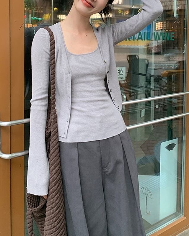 ................................................. ■ color gray ■ material ポリエステル ナイロン アクリル ウール ■ size S , M , L 【 タンクトップ 】 S: 肩幅 13cm 胸囲 52cm 着丈 56cm M:肩幅 15cm 胸囲 56cm 着丈 57cm L: 肩幅 17cm 胸囲 60cm 着丈 58cm 【 カーディガン 】 S: 肩幅 30cm 袖丈 64cm 胸囲 64cm 着丈 48cm M:肩幅 32cm 袖丈 66cm 胸囲 68cm 着丈 49cm L: 肩幅 34cm 袖丈 68cm 胸囲 72cm 着丈 50cm ※採寸方法により多少の誤差がある場合がございます ■ モデル身長:166cm [ 商品管理番号:j-0028 ] ▼ blanks人気ランキング https://www.blanksonline.shop/categories/3622302 ▼ 新商品・SALE情報をチェック! https://www.blanksonline.shop/ ▼ Instagram https://www.instagram.com/blanks.official/ ▶ ご購入時こちらを必ずお読みくださいませ 【 お買い物にあたってのご注意事項 】 https://www.blanksonline.shop/blog/2020/12/17/145916