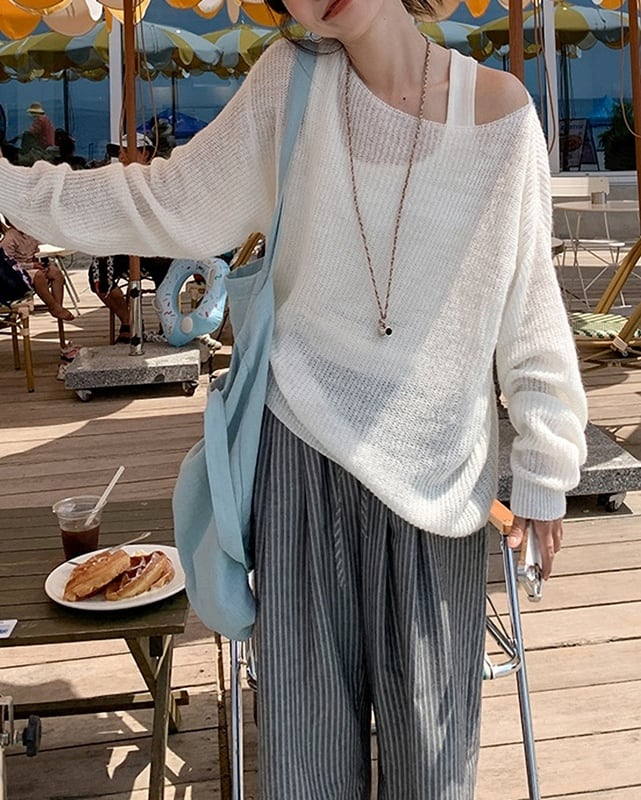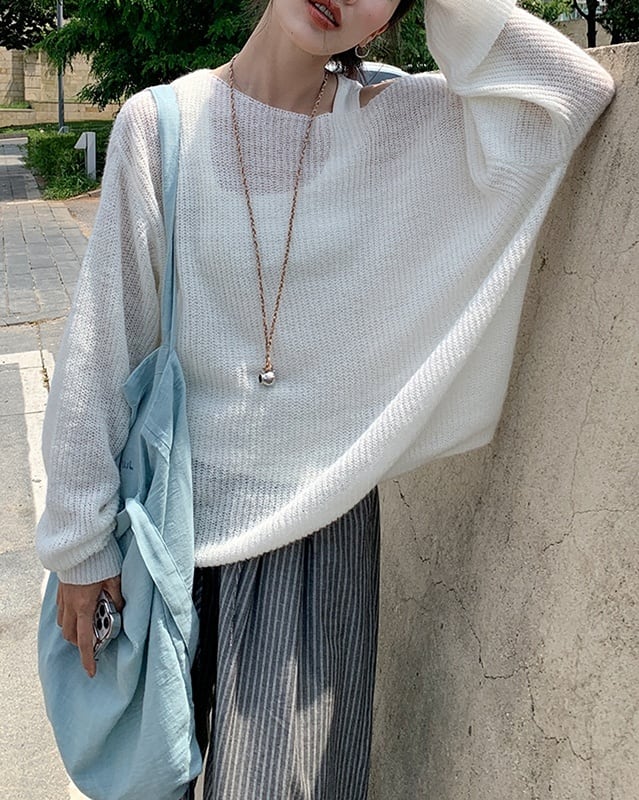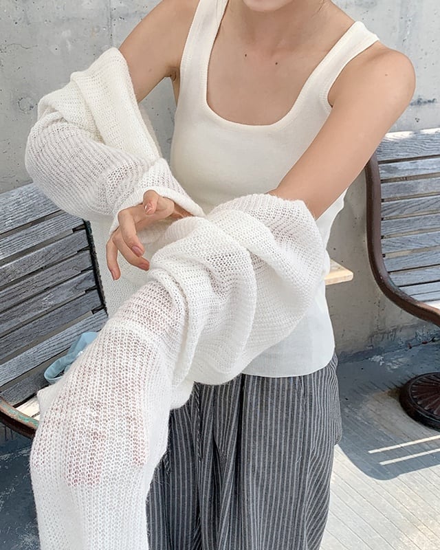 トレンド感たっぷりのシアーニット。透け感を生かした着こなしで、大人っぽさと抜け感をプラスできます。インナー次第で表情が変わり、カジュアルからきれいめまで幅広く使えるアイテムです。 ................................................. ■ color white ■ material ナイロン ポリエステル アクリル ウール ■ size S , M , L S: 肩幅 63cm 袖丈 53cm 胸囲 126cm 着丈 58cm M:肩幅 65cm 袖丈 55cm 胸囲 130cm 着丈 59cm L: 肩幅 67cm 袖丈 57cm 胸囲 134cm 着丈 60cm ※採寸方法により多少の誤差がある場合がございます ■ モデル身長:166cm [ 商品管理番号:j-0054 ] ▼ blanks人気ランキング https://www.blanksonline.shop/categories/3622302 ▼ 新商品・SALE情報をチェック! https://www.blanksonline.shop/ ▼ Instagram https://www.instagram.com/blanks.official/ ▶ ご購入時こちらを必ずお読みくださいませ 【 お買い物にあたってのご注意事項 】 https://www.blanksonline.shop/blog/2020/12/17/145916