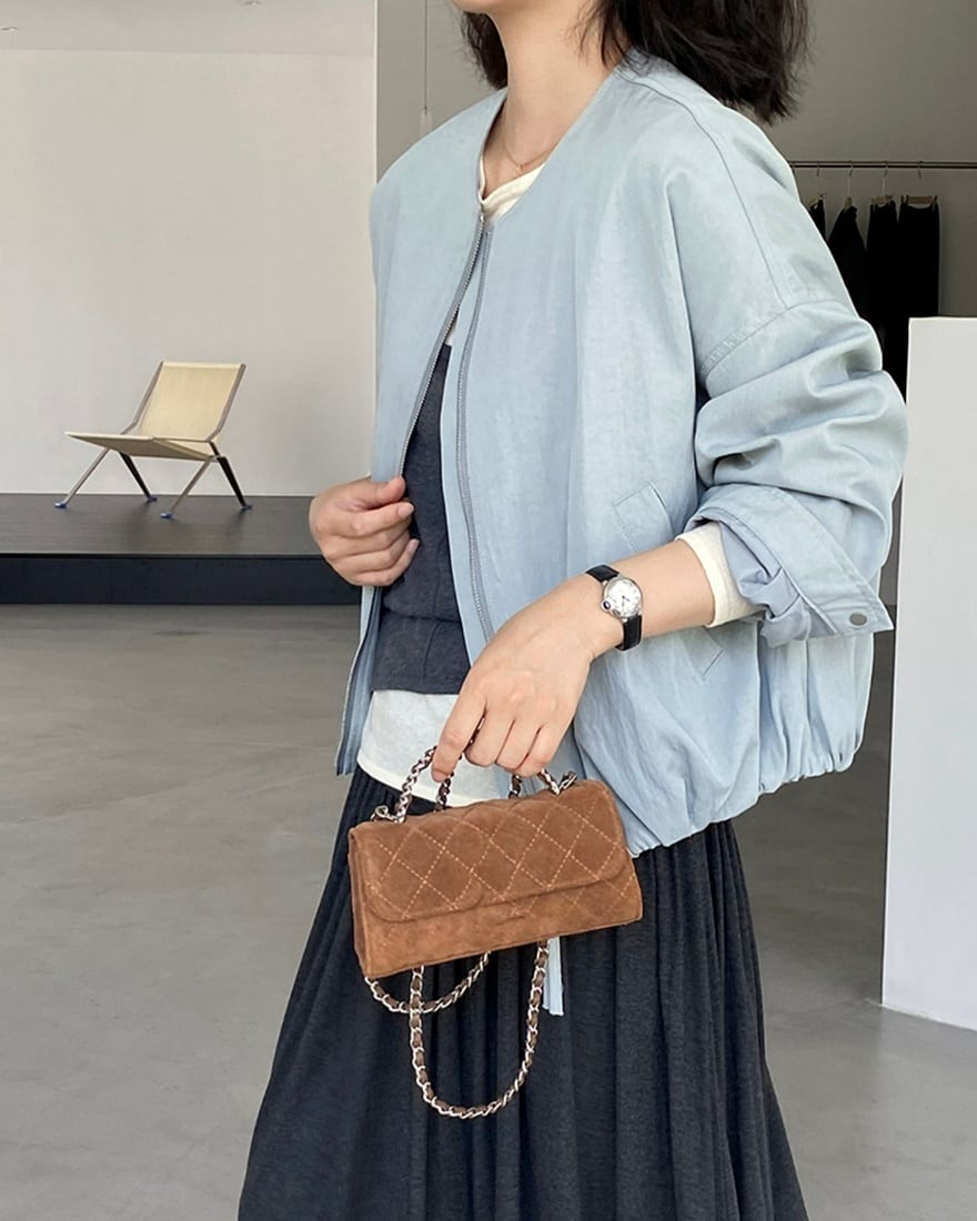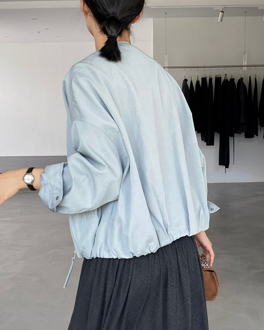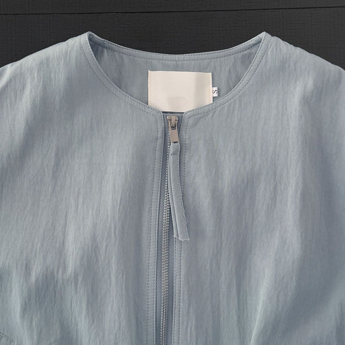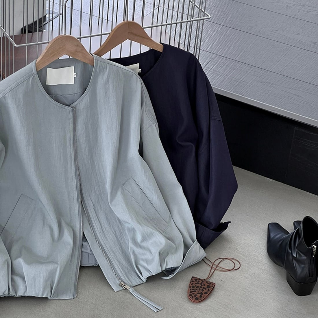 ノーカラーデザインが顔まわりをすっきり見せるジップアップジャケット。短め丈と裾の絞りデザインでスタイルアップ効果も◎。ゆったりとしたドルマンスリーブが抜け感をプラスし、カジュアルにもキレイめにも着こなせます。軽やかに羽織れる、季節の変わり目にぴったりな一枚です。 ................................................. ■ color light blue , blue ■ material ナイロン レーヨン ■ size S , M S: 肩幅 67cm 袖丈 43cm 胸囲 128cm 着丈 61cm M:肩幅 68cm 袖丈 44cm 胸囲 132cm 着丈 62cm ※採寸方法により多少の誤差がある場合がございます ■ モデル身長:163cm [ 商品管理番号:j-0060 ] ▼ blanks人気ランキング https://www.blanksonline.shop/categories/3622302 ▼ 新商品・SALE情報をチェック! https://www.blanksonline.shop/ ▼ Instagram https://www.instagram.com/blanks.official/ ▶ ご購入時こちらを必ずお読みくださいませ 【 お買い物にあたってのご注意事項 】 https://www.blanksonline.shop/blog/2020/12/17/145916