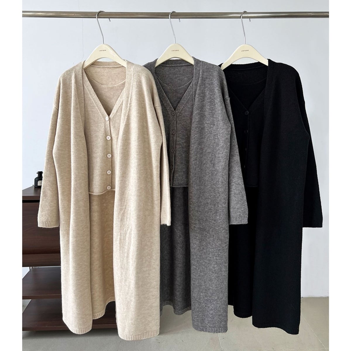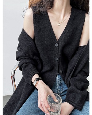ベストとカーディガンの組み合わせがトレンド感たっぷりのツーピースニット。ゆったりめのシルエットでリラックス感がありつつ、女性らしいラインも演出。1枚でこなれた印象に。 ................................................. ■ color ivory , gray , black ■ material アクリル ポリエステル ナイロン ■ size フリーサイズ 【 トップス 】 F:肩幅 32cm 胸囲 90cm 着丈 52cm 【 カーディガン 】 F:肩幅 56cm 袖丈 50cm 着丈 111cm ※採寸方法により多少の誤差がある場合がございます ■ モデル身長:166cm [ 商品管理番号:j-0071] ▼ blanks人気ランキング https://www.blanksonline.shop/categories/3622302 ▼ 新商品・SALE情報をチェック! https://www.blanksonline.shop/ ▼ Instagram https://www.instagram.com/blanks.official/ ▶ ご購入時こちらを必ずお読みくださいませ 【 お買い物にあたってのご注意事項 】 https://www.blanksonline.shop/blog/2020/12/17/145916