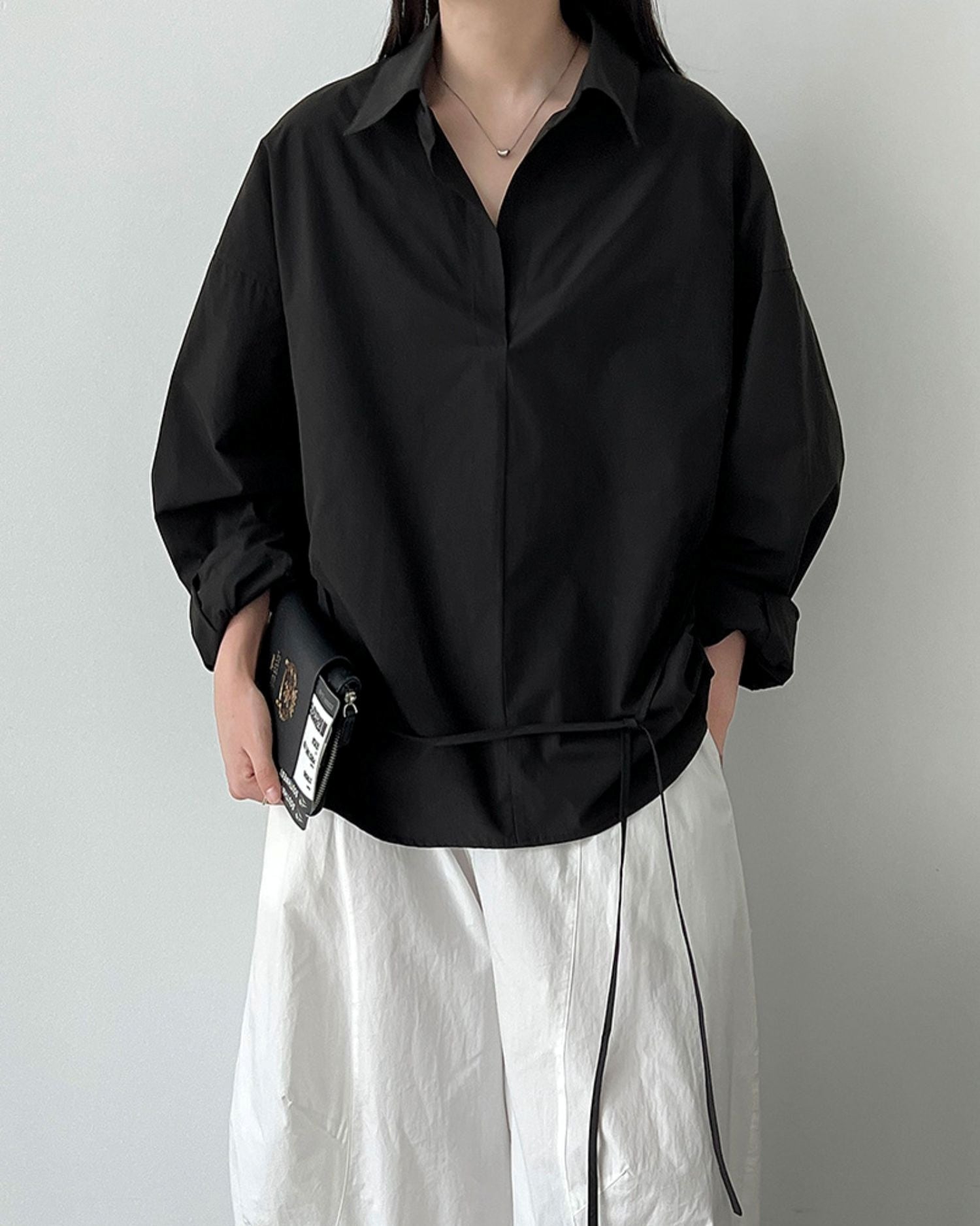 ウエストのタイデザインがアクセントになったシャツ。自然にシルエットを引き締め、すっきり大人っぽい印象に。ナチュラルな素材感で、カジュアルからきれいめまで着回せる一枚です。 ................................................. ■ color white , gray , black ■ material コットン ■ size フリーサイズ F:肩幅 60cm 袖丈 50cm 胸囲 112cm 着丈 69cm ※採寸方法により多少の誤差がある場合がございます ■ モデル身長:162cm [ 商品管理番号:j-0081] ▼ blanks人気ランキング https://www.blanksonline.shop/categories/3622302 ▼ 新商品・SALE情報をチェック! https://www.blanksonline.shop/ ▼ Instagram https://www.instagram.com/blanks.official/ ▶ ご購入時こちらを必ずお読みくださいませ 【 お買い物にあたってのご注意事項 】 https://www.blanksonline.shop/blog/2020/12/17/145916