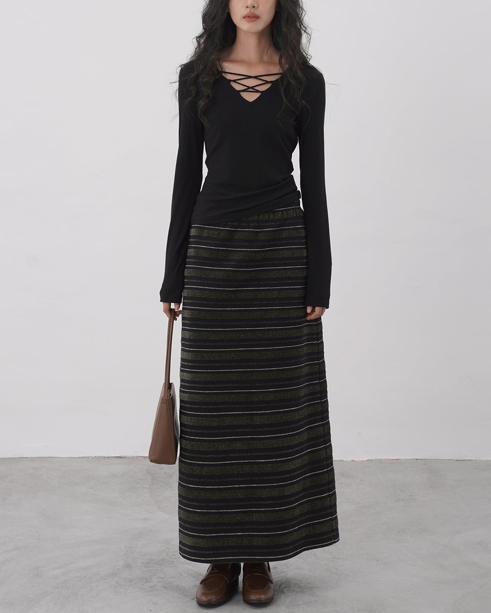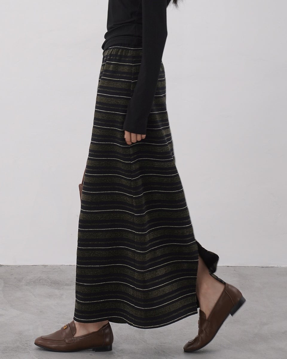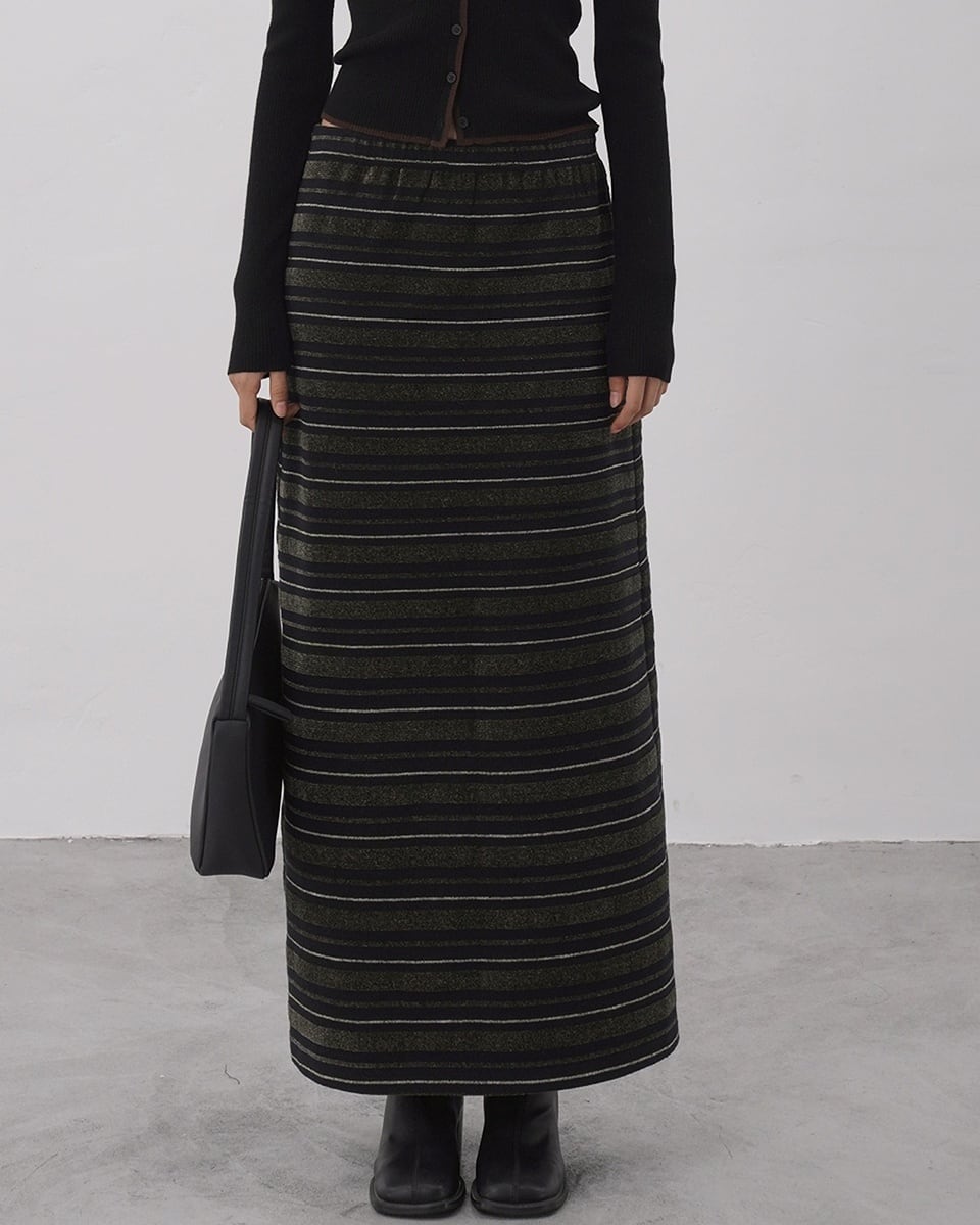 程よく広がるAラインシルエットにボーダー柄を効かせたロングスカート。カジュアルなトップスと合わせるだけで抜け感があり、デイリーに活躍するアイテムです。 ................................................. ■ color dark green ■ material ポリエステル コットン ■ size S , M , L , XL S :ウエスト 64cm ヒップ 94cm 着丈 92cm M:ウエスト 68cm ヒップ 98cm 着丈 93cm L :ウエスト 72cm ヒップ 102cm 着丈 94cm XL :ウエスト 76cm ヒップ 106cm 着丈 95cm ※採寸方法により多少の誤差がある場合がございます ■ モデル身長:167cm [ 商品管理番号:j-0084] ▼ blanks人気ランキング https://www.blanksonline.shop/categories/3622302 ▼ 新商品・SALE情報をチェック! https://www.blanksonline.shop/ ▼ Instagram https://www.instagram.com/blanks.official/ ▶ ご購入時こちらを必ずお読みくださいませ 【 お買い物にあたってのご注意事項 】 https://www.blanksonline.shop/blog/2020/12/17/145916