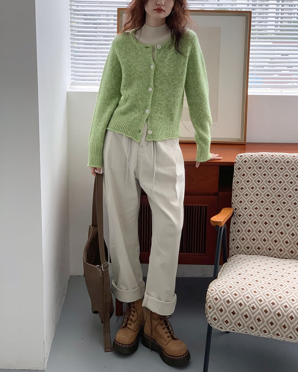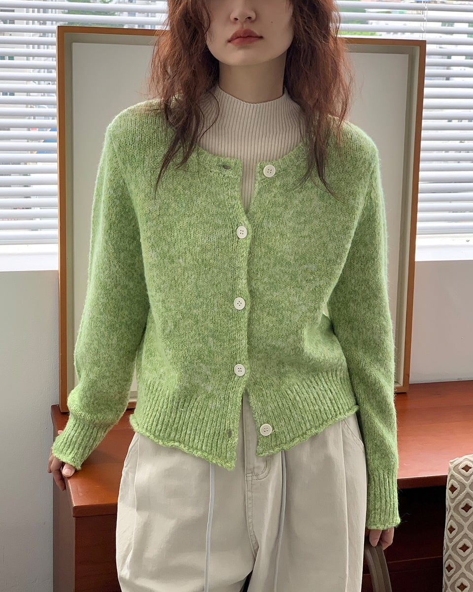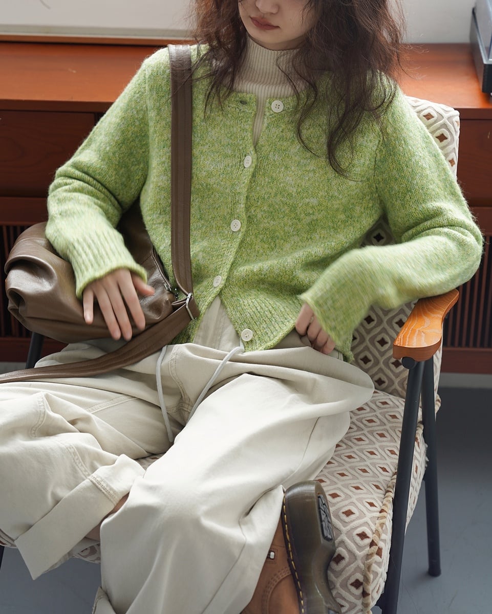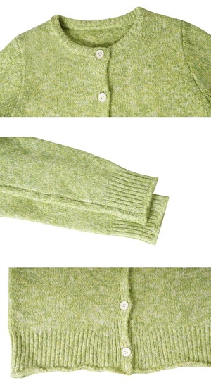 鮮やかなライトグリーンが目を惹くニットカーディガン。 クルーネックとシンプルなシルエットで、どんなコーデにも合わせやすい一枚です。 羽織るだけで顔周りがパッと明るくなり、季節の変わり目にも大活躍。大人のカジュアルスタイルにぴったりです。 ................................................. ■ color green ■ material アクリル ナイロン ウール モヘア スパンデックス ■ size S , M , L S: 肩幅 34cm 袖丈 59cm 胸囲 90cm 着丈 47cm M:肩幅 35cm 袖丈 60cm 胸囲 94cm 着丈 49cm L: 肩幅 36cm 袖丈 61cm 胸囲 98cm 着丈 51cm ※採寸方法により多少の誤差がある場合がございます ■ モデル身長:168cm [ 商品管理番号:j-0100 ] ▼ blanks人気ランキング https://www.blanksonline.shop/categories/3622302 ▼ 新商品・SALE情報をチェック! https://www.blanksonline.shop/ ▼ Instagram https://www.instagram.com/blanks.official/ ▶ ご購入時こちらを必ずお読みくださいませ 【 お買い物にあたってのご注意事項 】 https://www.blanksonline.shop/blog/2020/12/17/145916