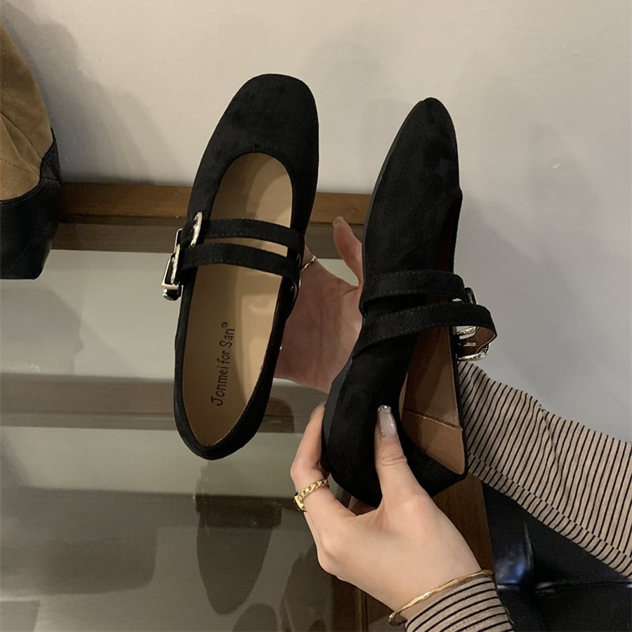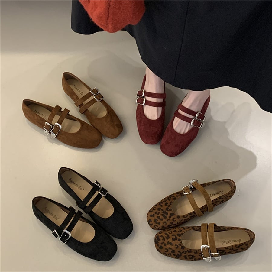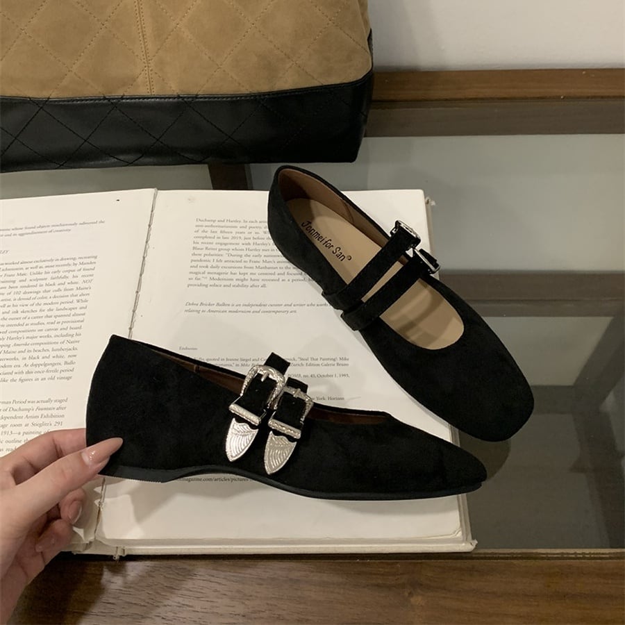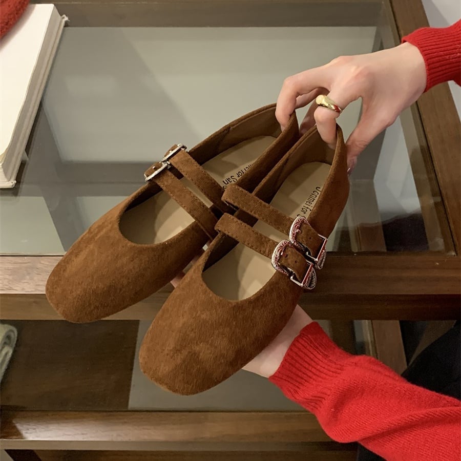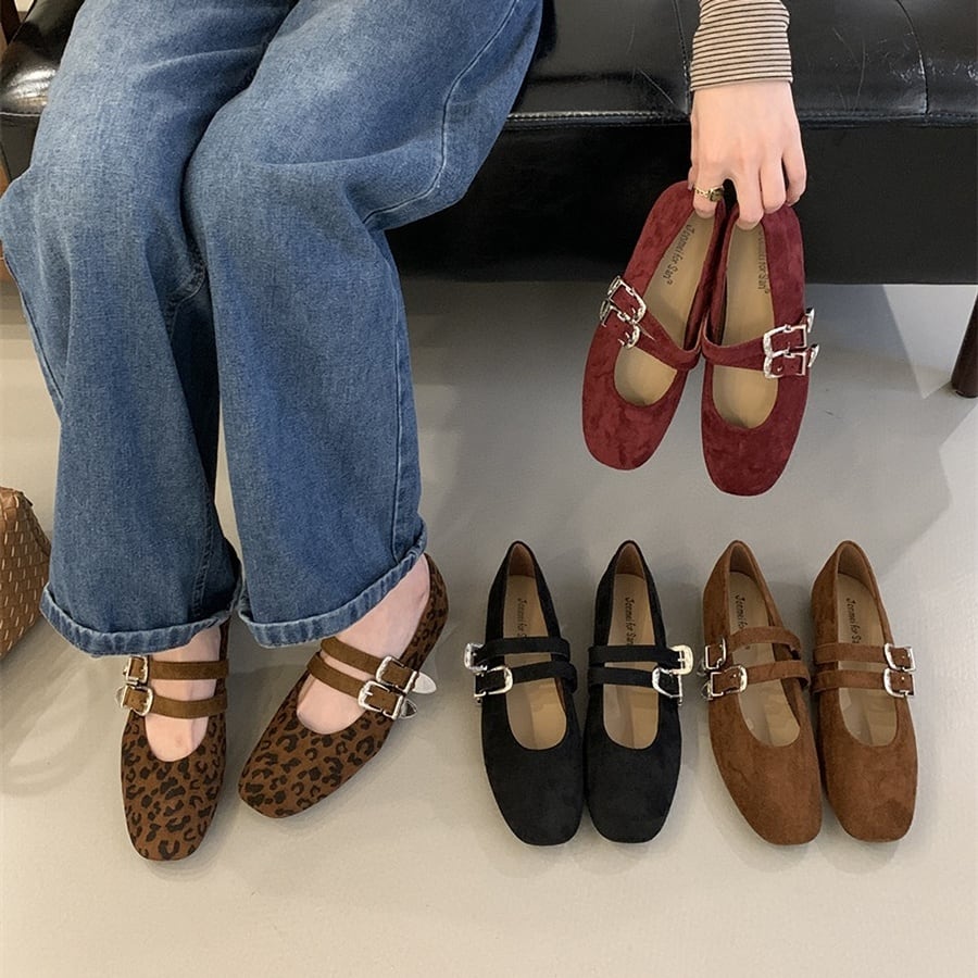 丸みのあるラウンドトゥに、2本の甲ストラップが上品なアクセントを添えるフラットシューズ。金具デザインが足元にさりげない華やかさをプラスします。歩きやすさとデザイン性を両立した一足は、きれいめにもカジュアルにも◎ ................................................. ■ color red , brown , black , leopard ■ material PU / スエード ■ size 35 - 22.5cm 36 - 23cm 37 - 23.5cm 38 - 24cm 39 - 24.5cm ヒール高さ: 約 2.5cm ※採寸方法により多少の誤差がある場合がございます [ 商品管理番号:j-0105 ] ▼ blanks人気ランキング https://www.blanksonline.shop/categories/3622302 ▼ 新商品・SALE情報をチェック! https://www.blanksonline.shop/ ▼ Instagram https://www.instagram.com/blanks.official/ ▶ ご購入時こちらを必ずお読みくださいませ 【 お買い物にあたってのご注意事項 】 https://www.blanksonline.shop/blog/2020/12/17/145916
