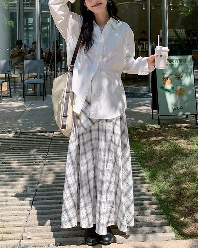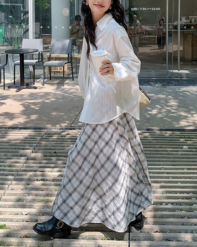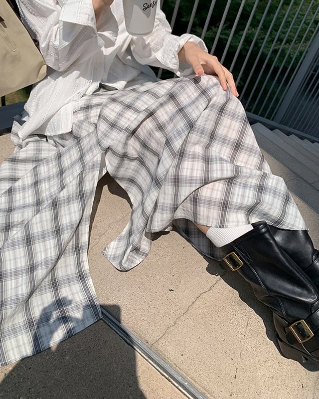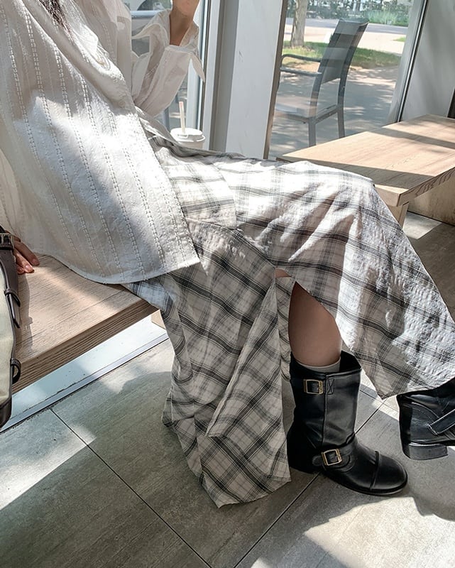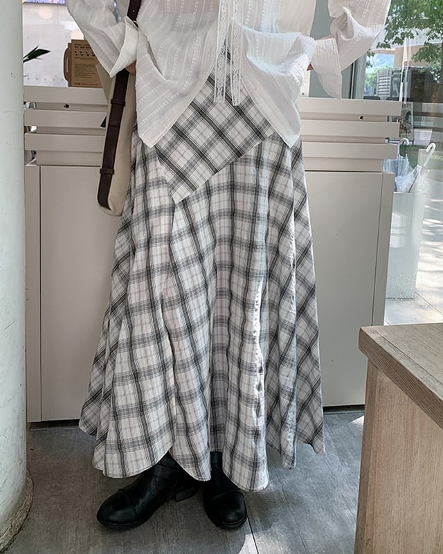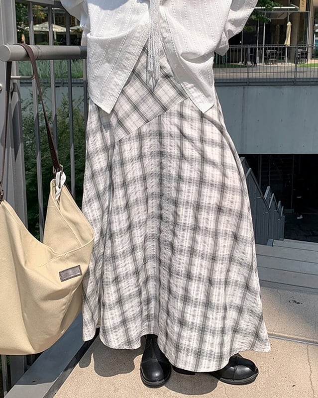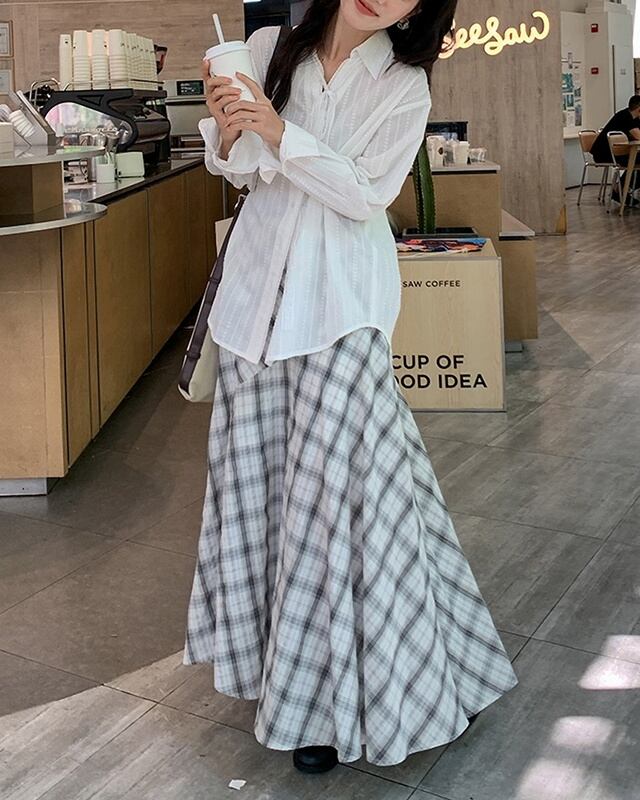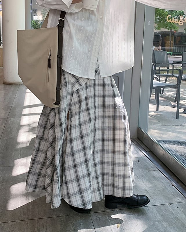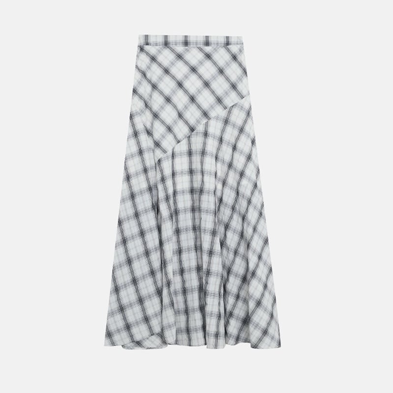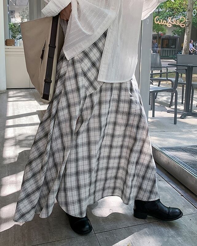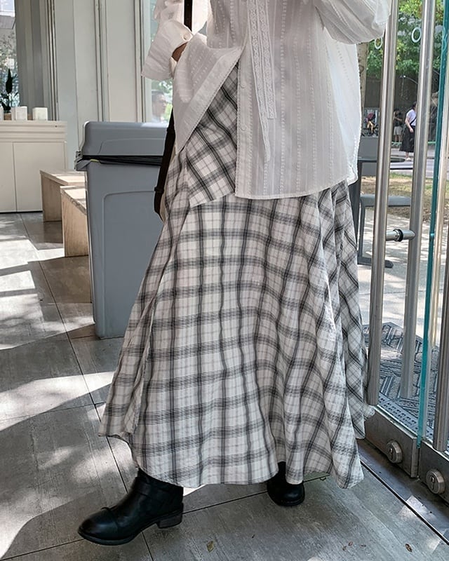 モノトーンのチェック柄が目を惹く、丈長めのフレアスカート。裾にかけてふんわり広がるシルエットが、コーディネートに軽やかさと女性らしさをプラスします。トップスをインすれば、スタイルアップ効果も抜群です。 ................................................. ■ color white ■ material コットン ■ size S , M , L S :ウエスト 64cm 着丈 93cm M:ウエスト 68cm 着丈 94.5cm L :ウエスト 72cm 着丈 96cm ※採寸方法により多少の誤差がある場合がございます ■ モデル身長:166cm [ 商品管理番号:j-0123] ▼ blanks人気ランキング https://www.blanksonline.shop/categories/3622302 ▼ 新商品・SALE情報をチェック! https://www.blanksonline.shop/ ▼ Instagram https://www.instagram.com/blanks.official/ ▶ ご購入時こちらを必ずお読みくださいませ 【 お買い物にあたってのご注意事項 】 https://www.blanksonline.shop/blog/2020/12/17/145916