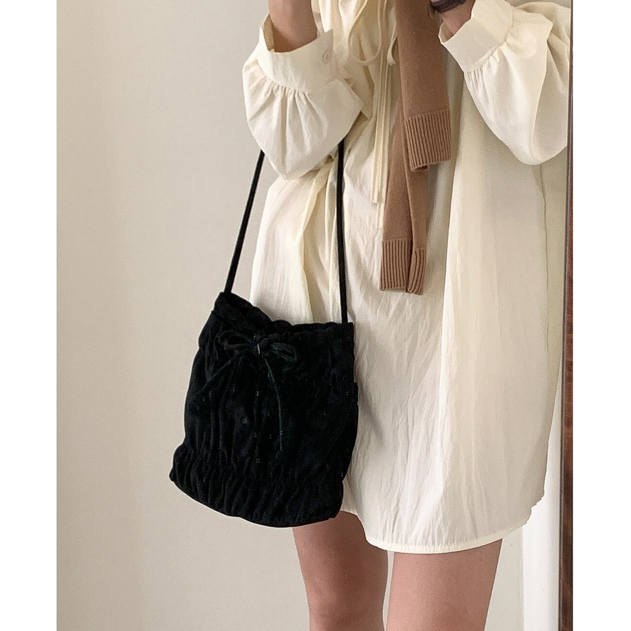 柔らかなフェイクスエード素材に、ギャザーと控えめなリボンをあしらった上品なバッグ。肩掛けできる長めの持ち手で、実用性も◎。シンプルながら女性らしさが漂うデザインで、きれいめコーデやワンピーススタイルにもぴったりです。 ................................................. ■ color ivory , brown , black ■ material フェイクスウェード ■ size one size 横幅:21cm 高さ:22.5cm マチ:5.5cm ショルダーベルト長さ:28.5cm ※採寸方法により多少の誤差がある場合がございます [ 商品管理番号:j-0132 ] ▼ blanks人気ランキング https://www.blanksonline.shop/categories/3622302 ▼ 新商品・SALE情報をチェック! https://www.blanksonline.shop/ ▼ Instagram https://www.instagram.com/blanks.official/ ▶ ご購入時こちらを必ずお読みくださいませ 【 お買い物にあたってのご注意事項 】 https://www.blanksonline.shop/blog/2020/12/17/145916