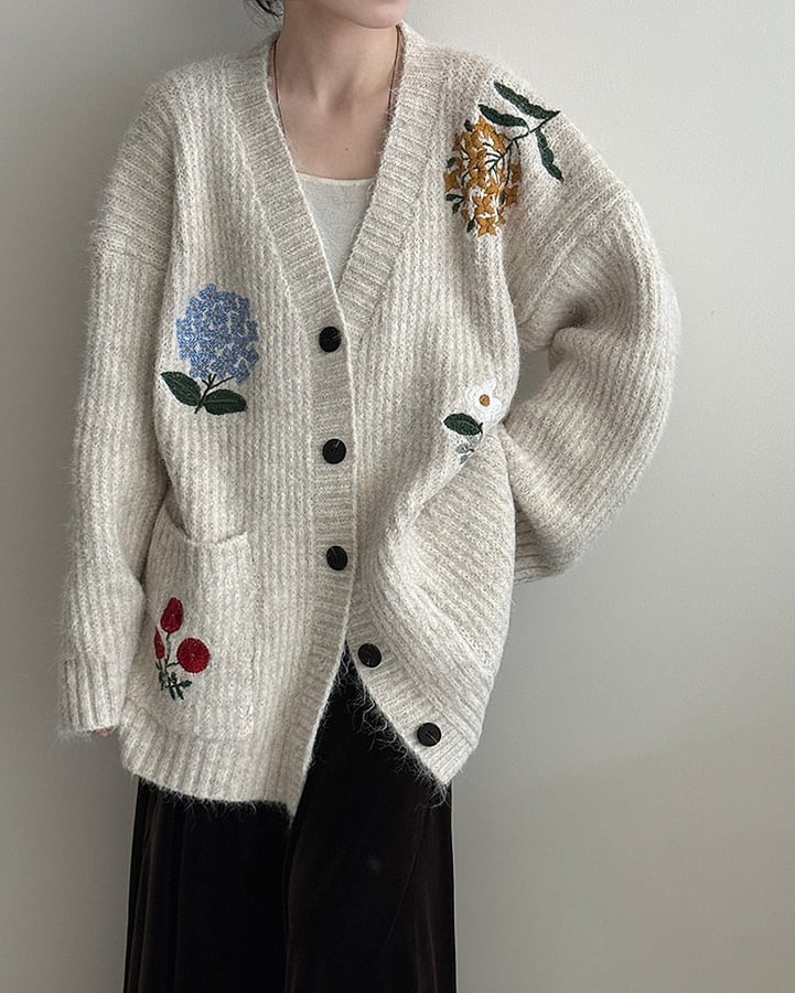 ふんわりとしたシルエットに、フラワー刺繍が映えるカーディガン。さりげないデザインながら、着るだけでコーデの主役になる一着です。肌寒い季節の軽い羽織りとしても活躍します。 ................................................. ■ color white , navy , brown , dark gray ■ material アクリル ナイロン ポリエステル ウール スパンデックス ■ size フリーサイズ F:肩幅 65cm 袖丈 48cm 胸囲 124cm 着丈 70cm ※採寸方法により多少の誤差がある場合がございます ■ モデル身長:163cm [ 商品管理番号:j-0147] ▼ blanks人気ランキング https://www.blanksonline.shop/categories/3622302 ▼ 新商品・SALE情報をチェック! https://www.blanksonline.shop/ ▼ Instagram https://www.instagram.com/blanks.official/ ▶ ご購入時こちらを必ずお読みくださいませ 【 お買い物にあたってのご注意事項 】 https://www.blanksonline.shop/blog/2020/12/17/145916