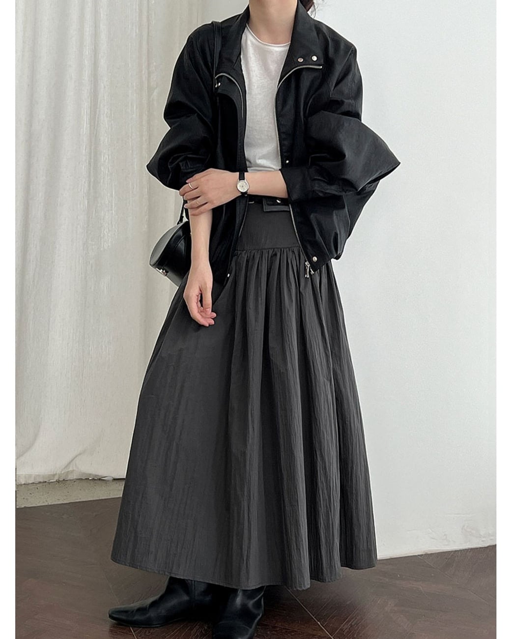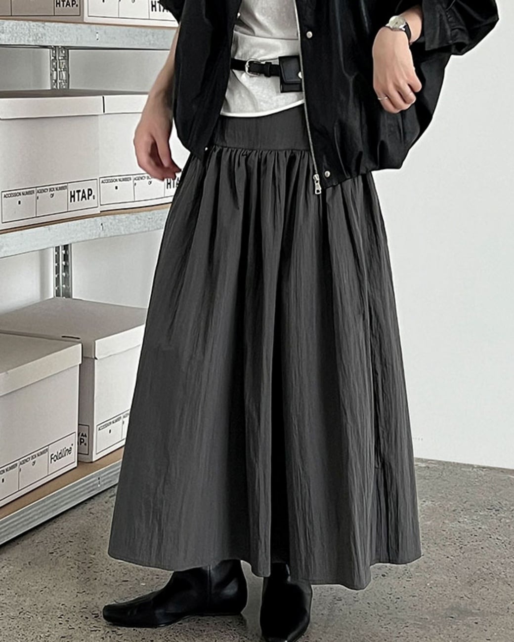 シンプルながらも切り替えデザインでメリハリのあるロングスカート。腰下からふわっと広がるフレアが、歩くたび軽やかに揺れます。デイリーに使いやすいグリーン、グレー、ダークグレーの3カラーを展開。 ................................................. ■ color green , gray , dark gray ■ material コットン ナイロン ■ size M , L M:ウエスト 68cm ヒップ 90cm 着丈 88cm L :ウエスト 72cm ヒップ 94cm 着丈 89cm ※採寸方法により多少の誤差がある場合がございます ■ モデル身長:163cm [ 商品管理番号:j-0148] ▼ blanks人気ランキング https://www.blanksonline.shop/categories/3622302 ▼ 新商品・SALE情報をチェック! https://www.blanksonline.shop/ ▼ Instagram https://www.instagram.com/blanks.official/ ▶ ご購入時こちらを必ずお読みくださいませ 【 お買い物にあたってのご注意事項 】 https://www.blanksonline.shop/blog/2020/12/17/145916