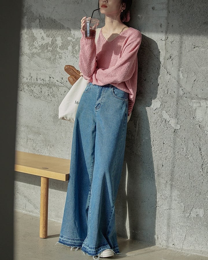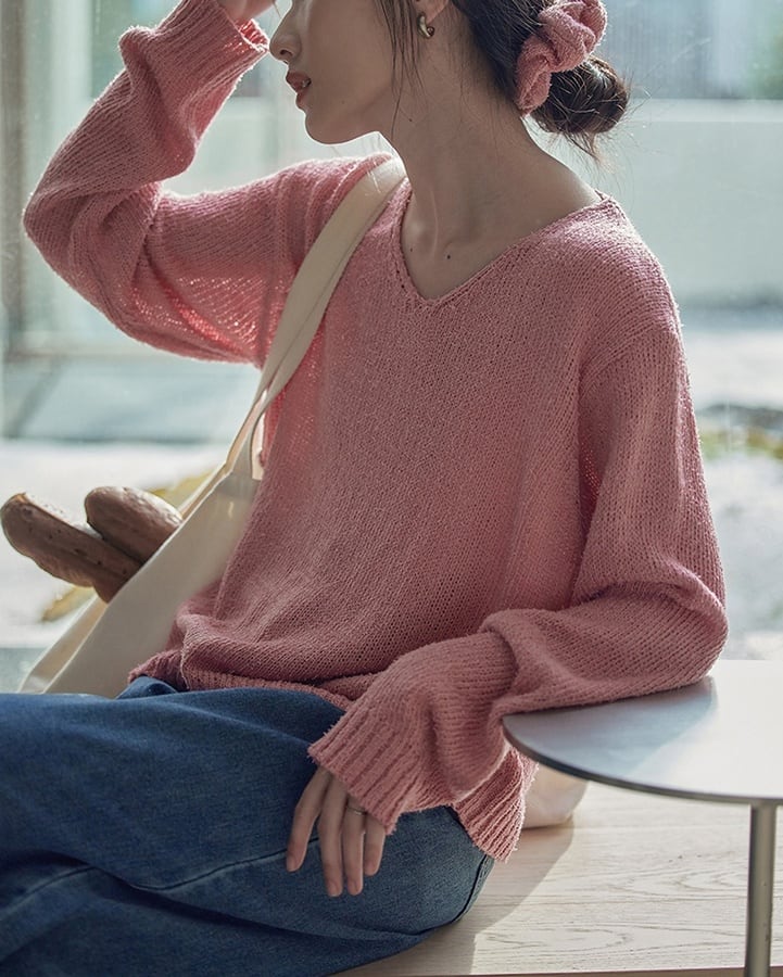 ゆったりとしたシルエットが魅力のVネックニット。抜け感のある大人カジュアルスタイルにぴったりで、デニムにもスカートにも合わせやすい万能アイテムです。