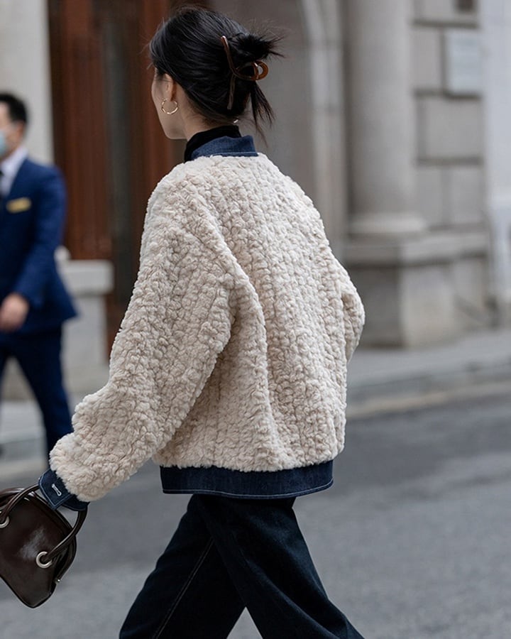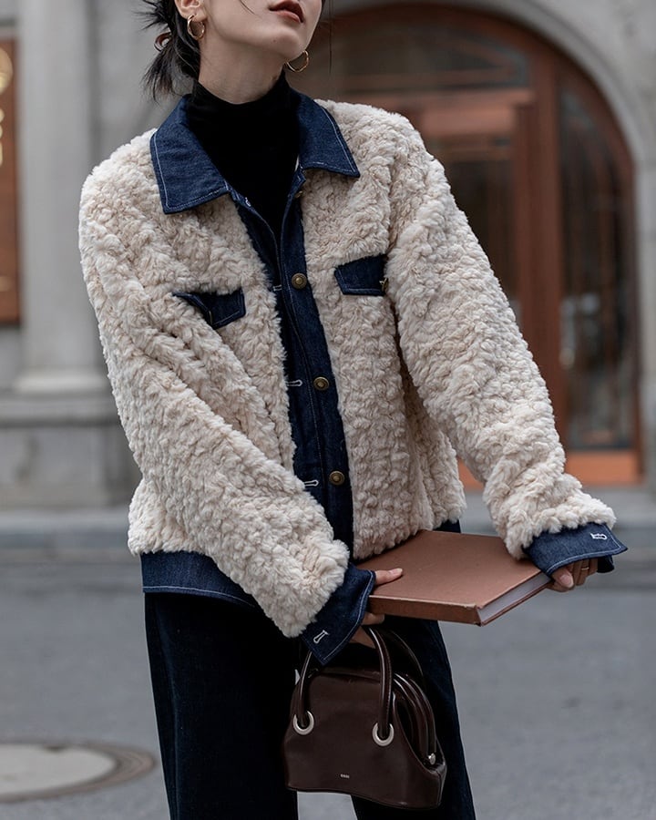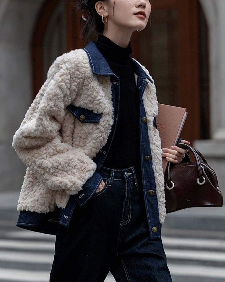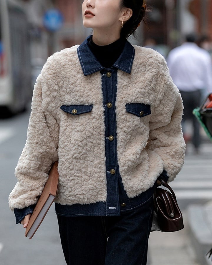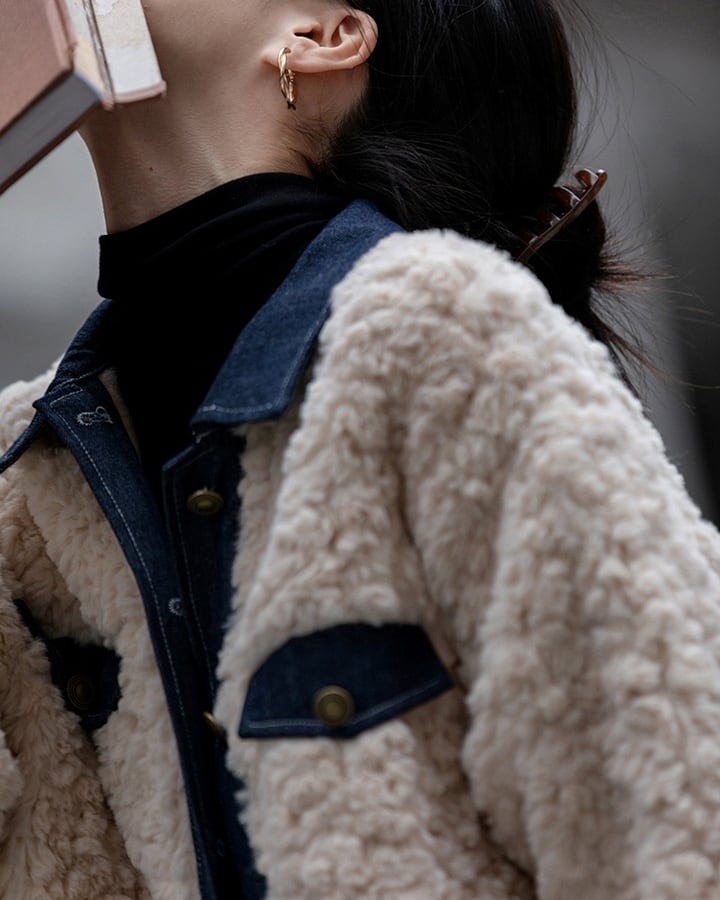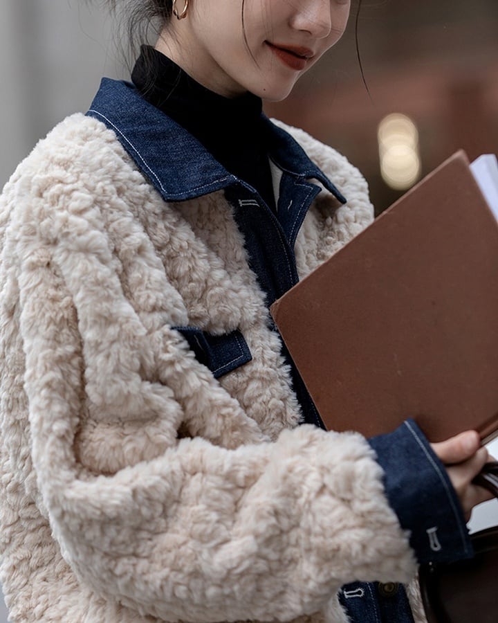 デニム素材にフェイクファーを組み合わせたジャケット。カジュアルな中にあたたかみと上品さをプラスし、ナチュラルで大人のこなれ感あるスタイルを演出します。