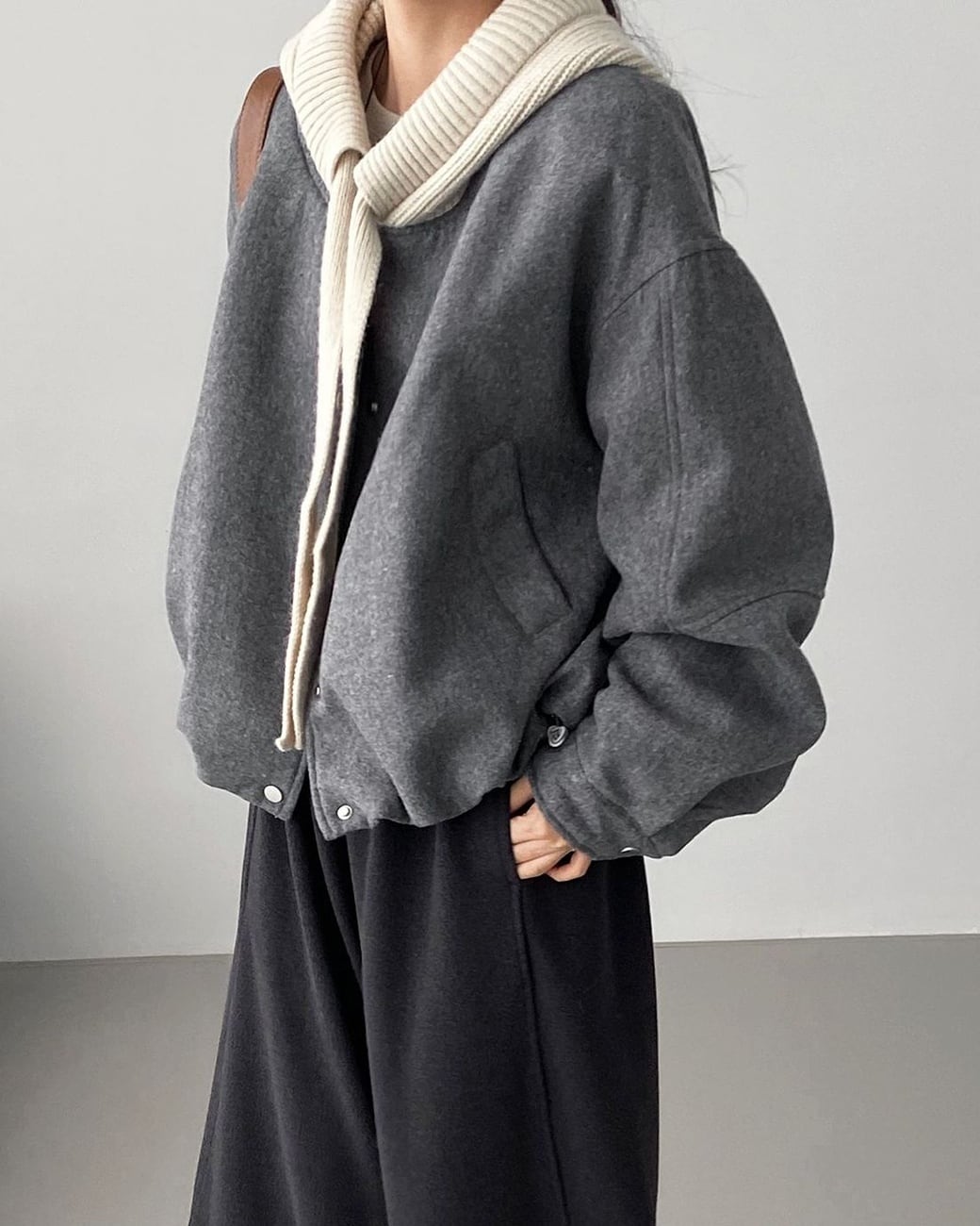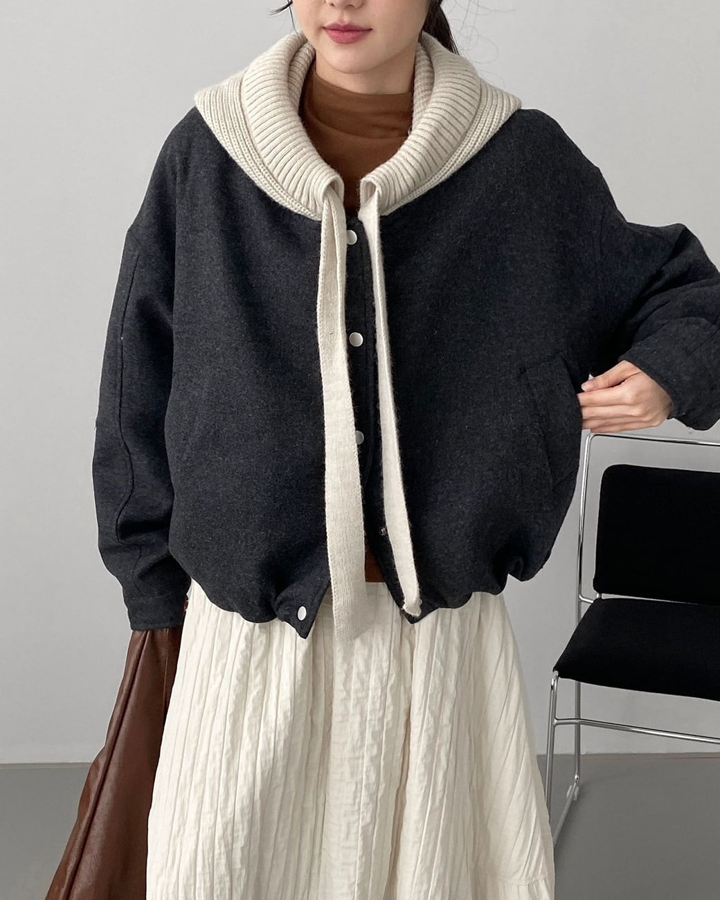 フード付きのショートジャケットで、気取らずおしゃれに。コンパクトな丈感がスタイルアップを叶え、ナチュラルな大人カジュアルにぴったりの一枚です。
