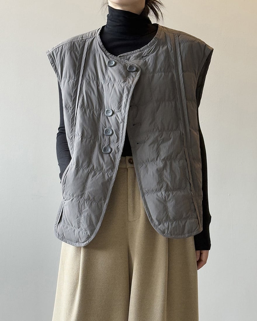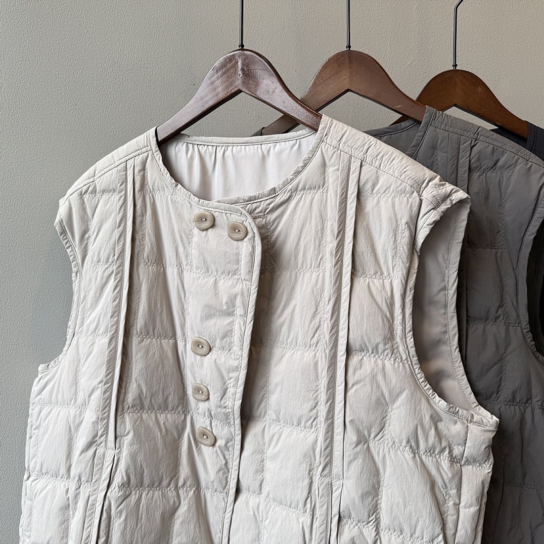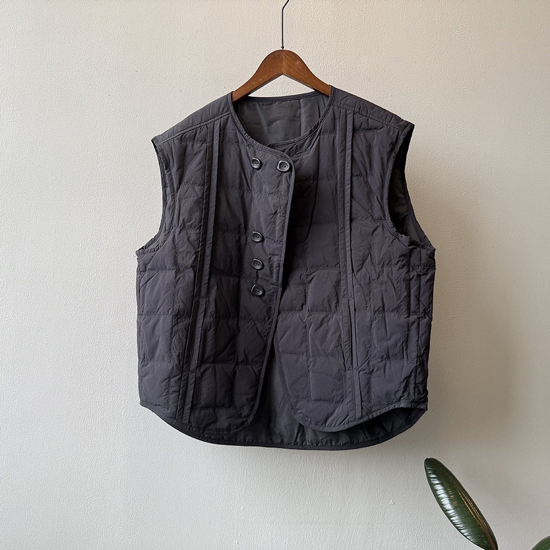 カジュアルな中綿ベストに、上品さをプラスするフロントボタン仕様。ニットやシャツとのレイヤードも楽しめる、すっきりとしたシルエットが魅力です。ベージュ・グレー・ブラックの落ち着いたカラー展開で、大人のこなれスタイリングにぴったりです。 ................................................. ■ color beige , gray , black ■ material ナイロン ポリエステル ■ size M , L M:肩幅 50cm 胸囲 120cm 着丈 64-69cm L: 肩幅 51cm 胸囲 124cm 着丈 65-70cm ※採寸方法により多少の誤差がある場合がございます [ 商品管理番号:j-0176 ] ▼ blanks人気ランキング https://www.blanksonline.shop/categories/3622302 ▼ 新商品・SALE情報をチェック! https://www.blanksonline.shop/ ▼ Instagram https://www.instagram.com/blanks.official/ ▶ ご購入時こちらを必ずお読みくださいませ 【 お買い物にあたってのご注意事項 】 https://www.blanksonline.shop/blog/2020/12/17/145916
