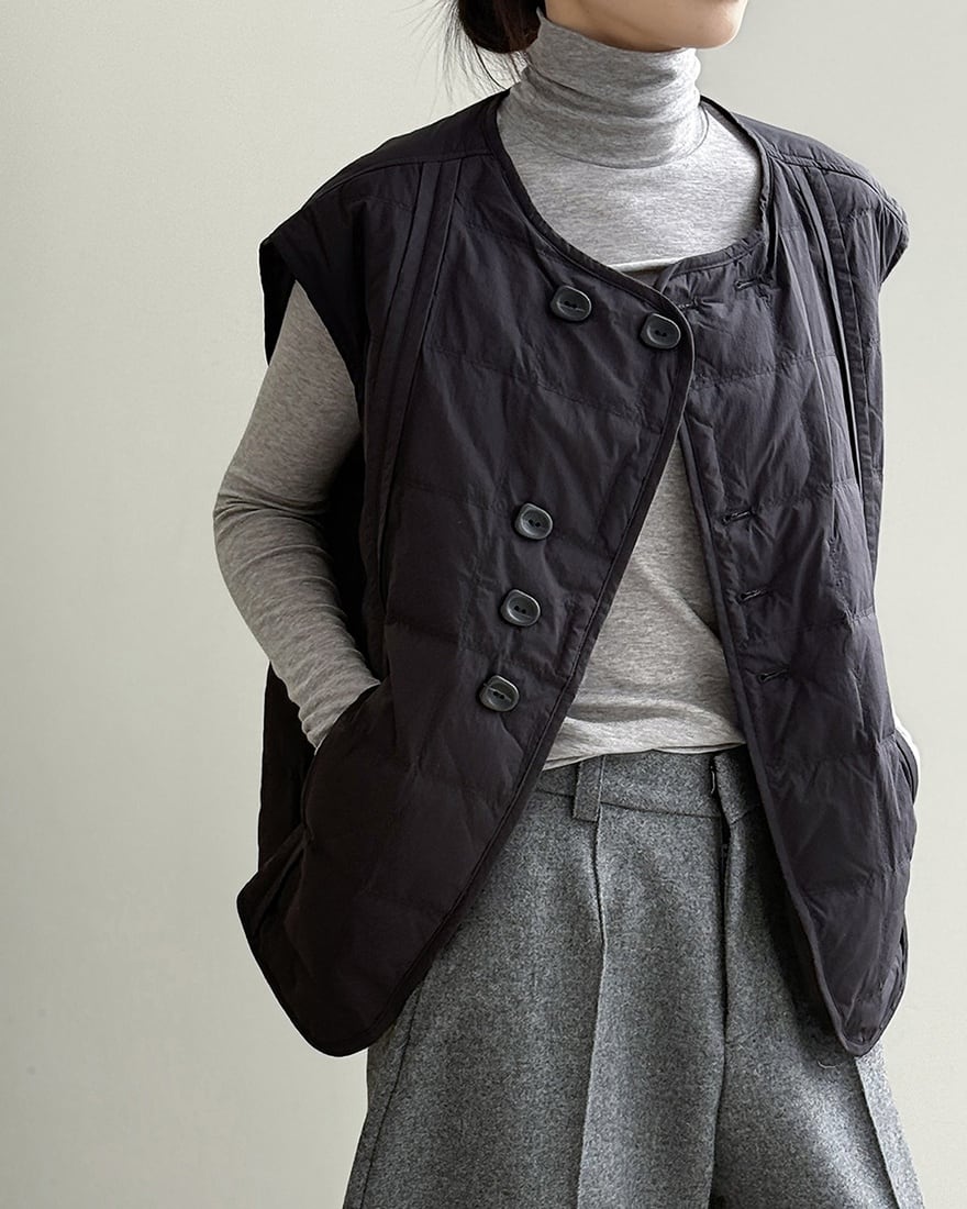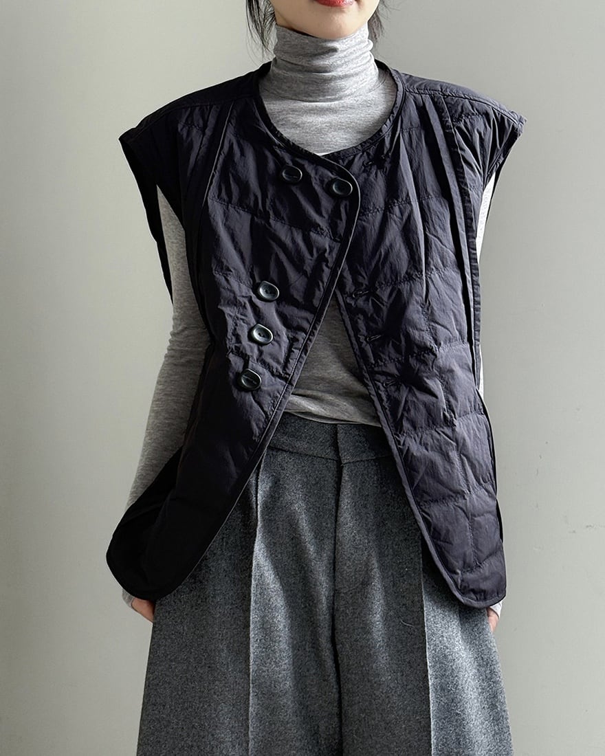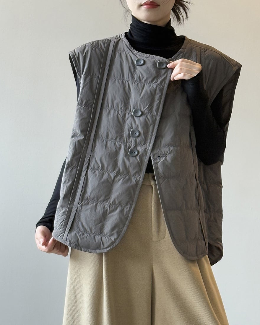 カジュアルな中綿ベストに、上品さをプラスするフロントボタン仕様。ニットやシャツとのレイヤードも楽しめる、すっきりとしたシルエットが魅力です。ベージュ・グレー・ブラックの落ち着いたカラー展開で、大人のこなれスタイリングにぴったりです。 ................................................. ■ color beige , gray , black ■ material ナイロン ポリエステル ■ size M , L M:肩幅 50cm 胸囲 120cm 着丈 64-69cm L: 肩幅 51cm 胸囲 124cm 着丈 65-70cm ※採寸方法により多少の誤差がある場合がございます [ 商品管理番号:j-0176 ] ▼ blanks人気ランキング https://www.blanksonline.shop/categories/3622302 ▼ 新商品・SALE情報をチェック! https://www.blanksonline.shop/ ▼ Instagram https://www.instagram.com/blanks.official/ ▶ ご購入時こちらを必ずお読みくださいませ 【 お買い物にあたってのご注意事項 】 https://www.blanksonline.shop/blog/2020/12/17/145916