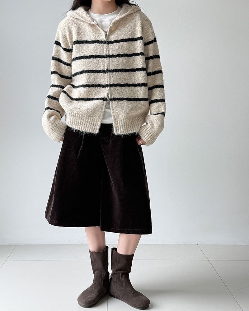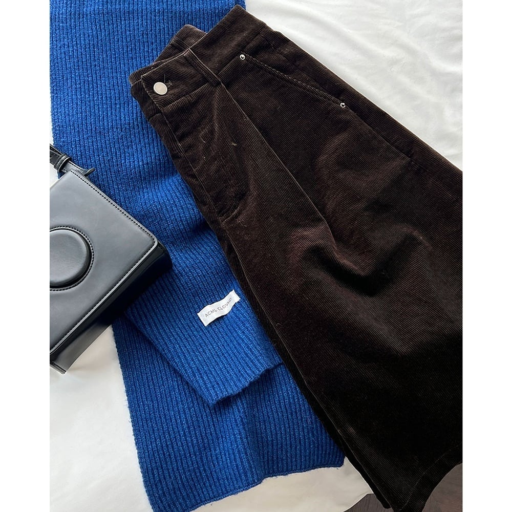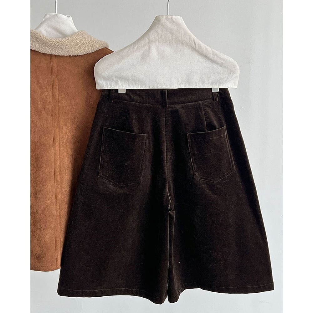 秋冬にぴったりなコーデュロイ素材のショートパンツ。ひざ下丈で大人っぽく、裾にかけてほんのり広がるフレアシルエットが、足元に抜け感をプラスします。あたたかみのあるブラウンカラーで、季節感あるスタイリングが楽しめます。