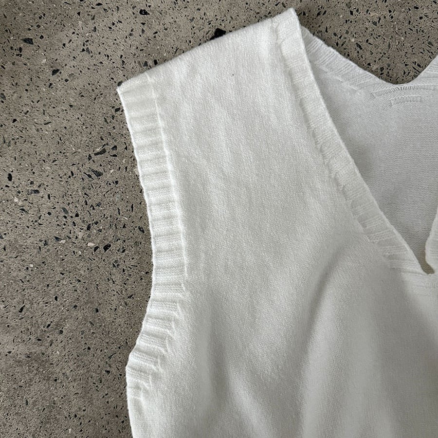 深めのVネックが抜け感を演出するルーズシルエットのニットベスト。シャツやカットソーに重ねるだけで、ナチュラルで大人っぽいレイヤードスタイルが完成します。