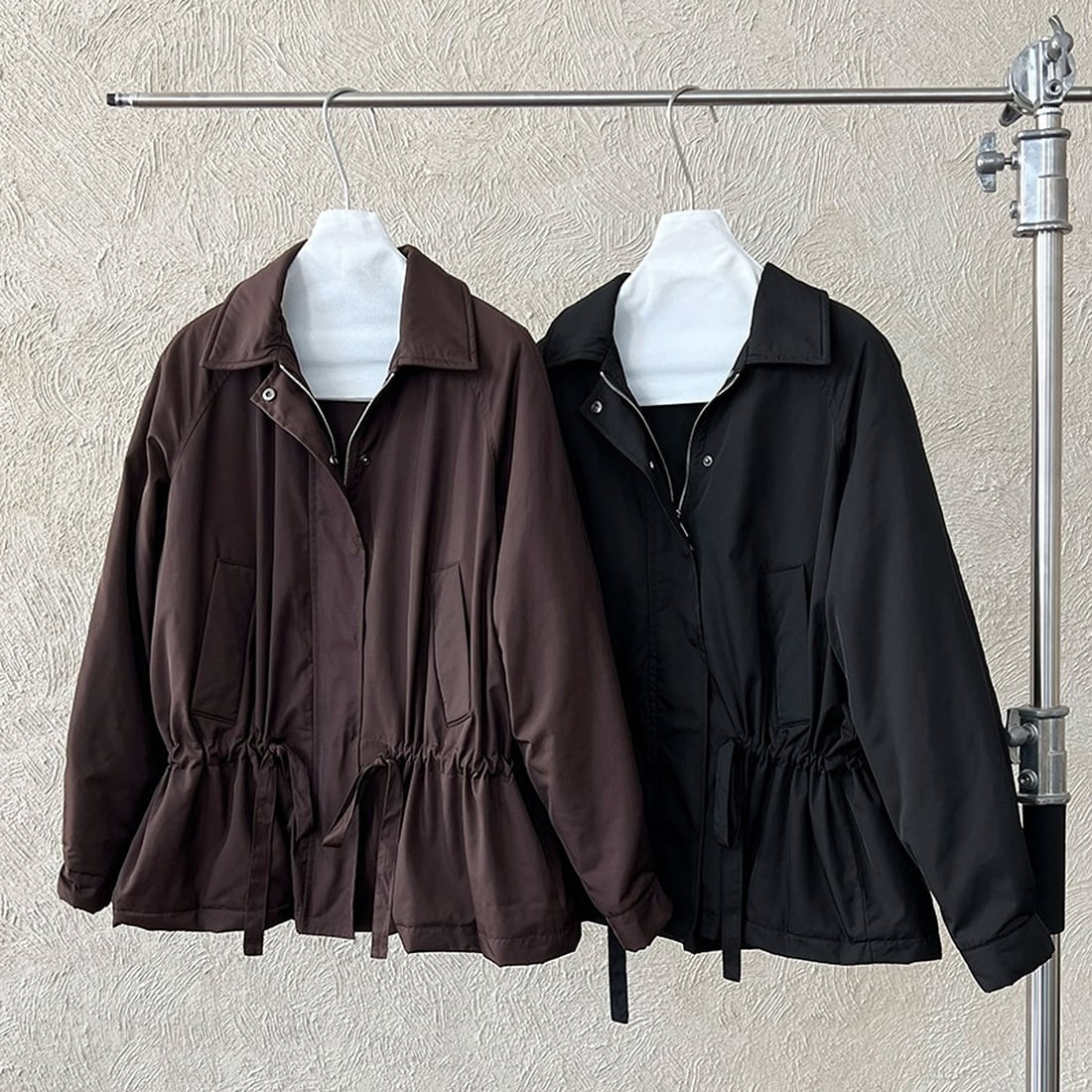 程よい丈感のヒップ丈で、気になる部分をさりげなくカバー。ウエストのドロストを調整することで、シルエットに変化をつけられるジップアップジャケットです。カジュアルな印象の中にも女性らしさを感じる上品な仕上がり。ブラックとブラウンの使いやすい2色展開で、どんなスタイルにも馴染みます。 ................................................. ■ color brown , black ■ material ポリエステル ■ size M , L M:袖丈 74cm 胸囲 134cm 着丈 71cm L: 袖丈 78cm 胸囲 138cm 着丈 72cm ※採寸方法により多少の誤差がある場合がございます ■ モデル身長:163cm [ 商品管理番号:j-0190 ] ▼ blanks人気ランキング https://www.blanksonline.shop/categories/3622302 ▼ 新商品・SALE情報をチェック! https://www.blanksonline.shop/ ▼ Instagram https://www.instagram.com/blanks.official/ ▶ ご購入時こちらを必ずお読みくださいませ 【 お買い物にあたってのご注意事項 】 https://www.blanksonline.shop/blog/2020/12/17/145916