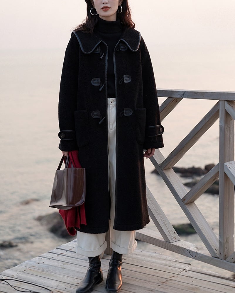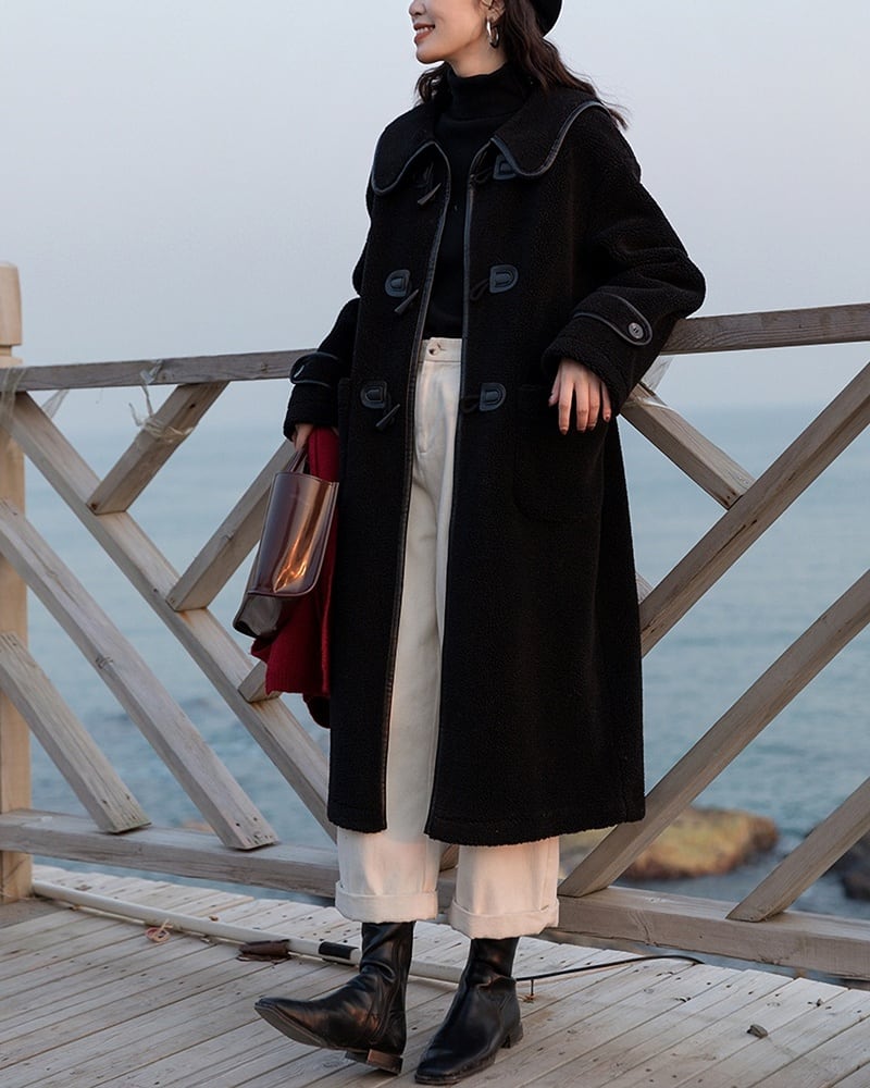 存在感のある大きめの襟が印象的なビッグカラーダッフルコート。ゆったりとしたシルエットで重ね着もしやすく、冬のカジュアルスタイルにぴったりです。トグルボタンやフロントのデザインがアクセントになり、シンプルなデニムやスニーカーと合わせるだけでこなれた印象に仕上がります。寒い日でも暖かく、デイリーから休日のお出かけまで幅広く活躍する一枚です。 ................................................. ■ color black ■ material ポリエステル ■ size XS , S , M , XS: 肩幅 47cm 袖丈 50cm 胸囲 108cm 着丈 108cm S: 肩幅 49cm 袖丈 52cm 胸囲 112cm 着丈 109cm M:肩幅 51cm 袖丈 54cm 胸囲 116cm 着丈 110cm ※採寸方法により多少の誤差がある場合がございます ■ モデル身長:165cm [ 商品管理番号:j-0202 ] ▼ blanks人気ランキング https://www.blanksonline.shop/categories/3622302 ▼ 新商品・SALE情報をチェック! https://www.blanksonline.shop/ ▼ Instagram https://www.instagram.com/blanks.official/ ▶ ご購入時こちらを必ずお読みくださいませ 【 お買い物にあたってのご注意事項 】 https://www.blanksonline.shop/blog/2020/12/17/145916