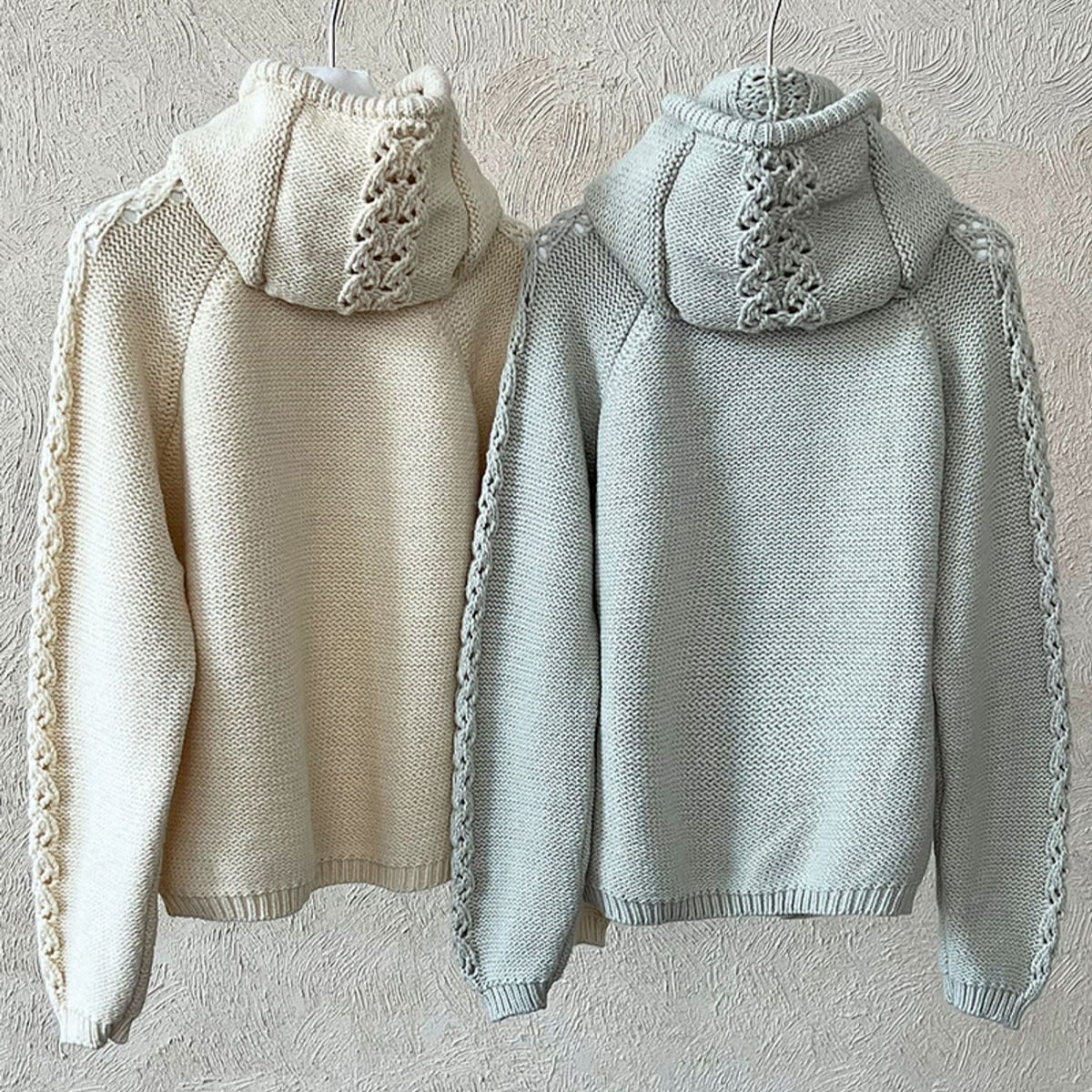 柔らかな風合いとデザイン性のある編み地が魅力のフード付きニット。フードは取り外し可能で、カジュアルにもきれいめにも自在にアレンジ可能。程よくゆとりのあるシルエットが体のラインを優しく包み、こなれた印象に。カラーはアイボリーとグレーの2色展開で、どちらも落ち着いた大人の雰囲気を演出。