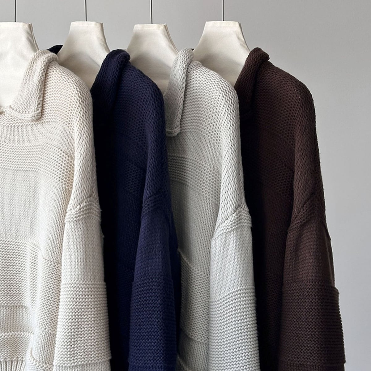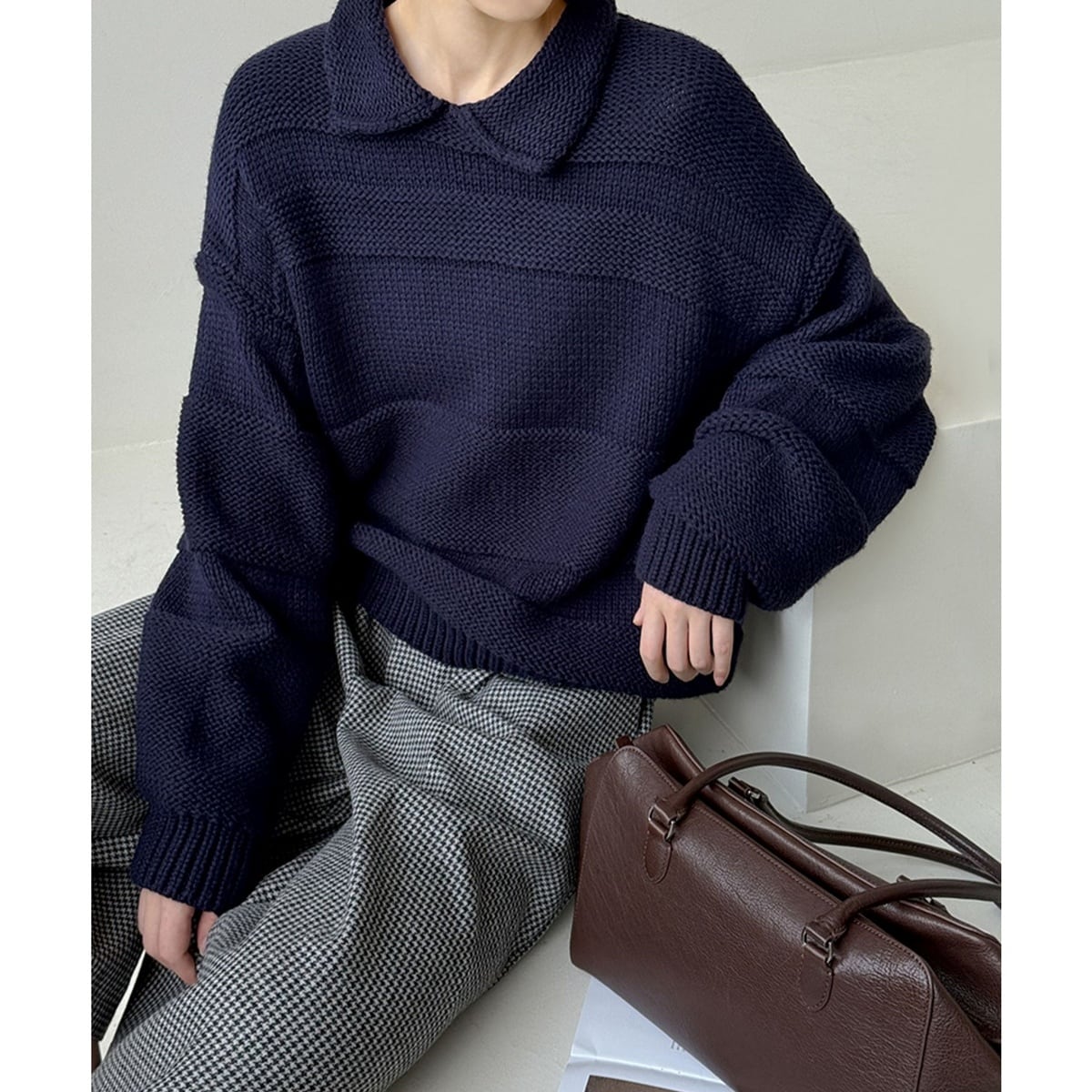 衿付きデザインと立体的な太めボーダーがナチュラル感を引き立てるオーバーニット。肩の力を抜いたラフなスタイルを楽しめる一枚で、デニムやスカートとの組み合わせも簡単。日常使いからお出かけまで、温かみのある着こなしを叶えます。 ................................................. ■ color white , gray , brown , navy ■ material アクリル ■ size フリーサイズ F:肩幅 59cm 袖丈 53cm 胸囲 118cm 着丈 69cm ※採寸方法により多少の誤差がある場合がございます [ 商品管理番号:j-0214] ▼ blanks人気ランキング https://www.blanksonline.shop/categories/3622302 ▼ 新商品・SALE情報をチェック! https://www.blanksonline.shop/ ▼ Instagram https://www.instagram.com/blanks.official/ ▶ ご購入時こちらを必ずお読みくださいませ 【 お買い物にあたってのご注意事項 】 https://www.blanksonline.shop/blog/2020/12/17/145916