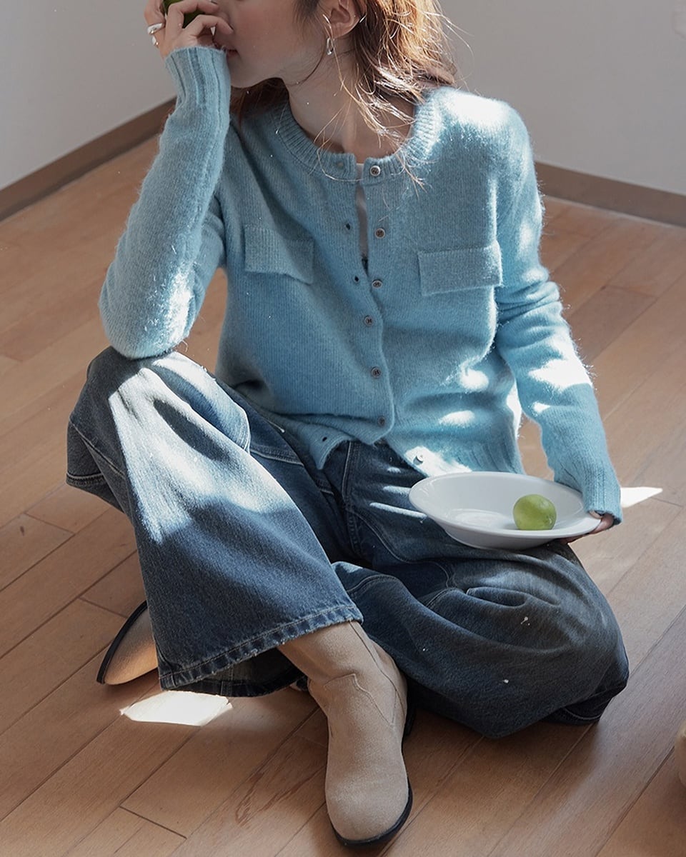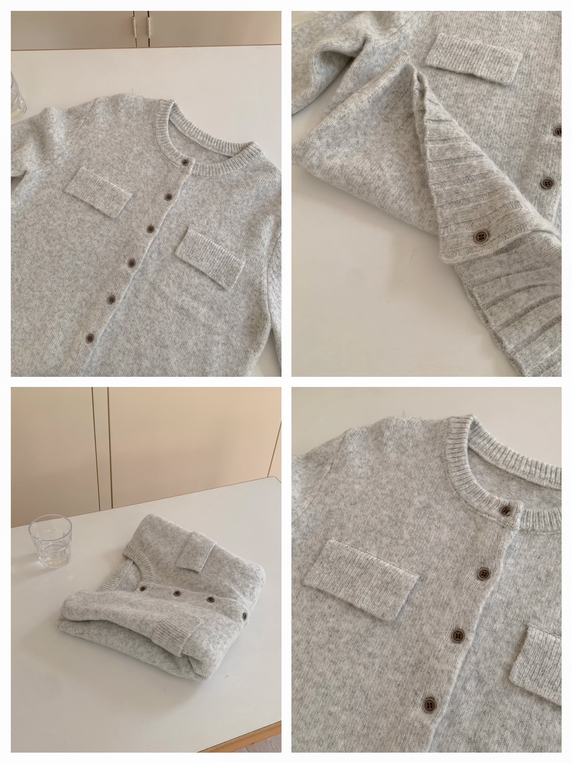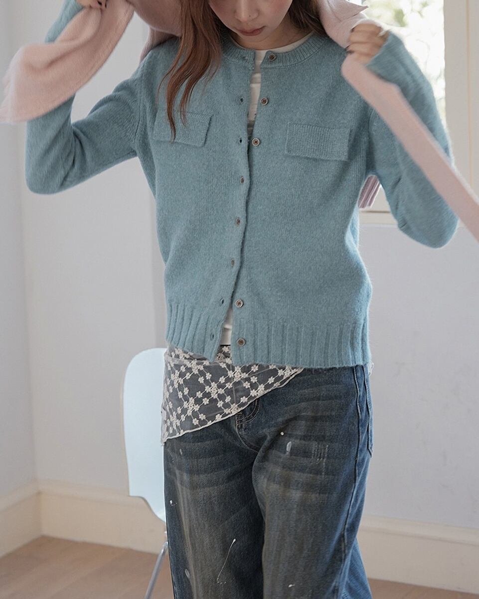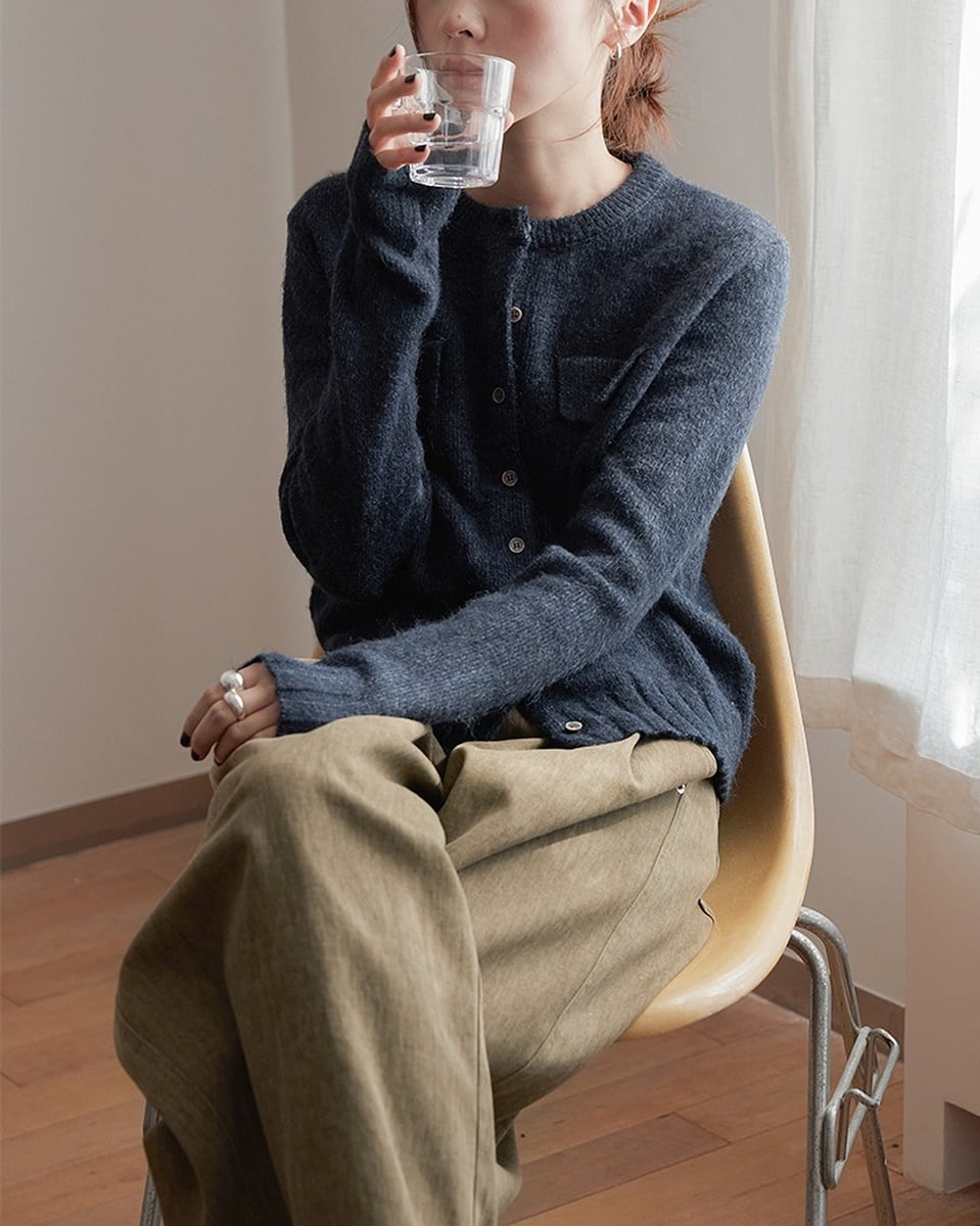胸ポケットとボタンデザインがナチュラルなアクセントになったラウンドネックカーディガン。ゆったりシルエットで肩の力を抜いたラフな着こなしが楽しめます。柔らかく暖かい素材で、厚手のインナーとも重ねやすく、デイリーコーデや休日のお出かけに最適。自然体で優しい印象のスタイルに仕上がる一枚です。 ................................................. ■ color pink , blue , gray , navy ■ material アクリル ナイロン ウール ■ size S , M , L S: 肩幅 40cm 袖丈 65cm 胸囲 94cm 着丈 54cm M:肩幅 41cm 袖丈 66cm 胸囲 98cm 着丈 56cm L: 肩幅 42cm 袖丈 67cm 胸囲 102cm 着丈 58cm ※採寸方法により多少の誤差がある場合がございます ■ モデル身長:168cm [ 商品管理番号:j-0216 ] ▼ blanks人気ランキング https://www.blanksonline.shop/categories/3622302 ▼ 新商品・SALE情報をチェック! https://www.blanksonline.shop/ ▼ Instagram https://www.instagram.com/blanks.official/ ▶ ご購入時こちらを必ずお読みくださいませ 【 お買い物にあたってのご注意事項 】 https://www.blanksonline.shop/blog/2020/12/17/145916