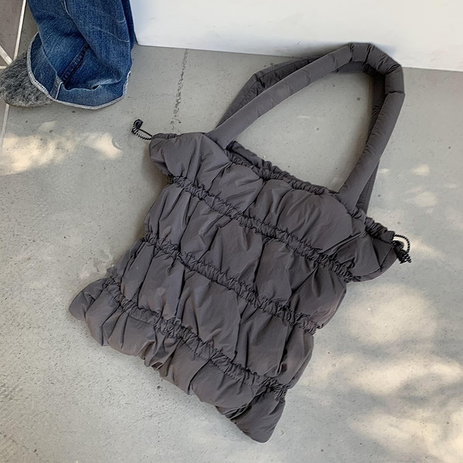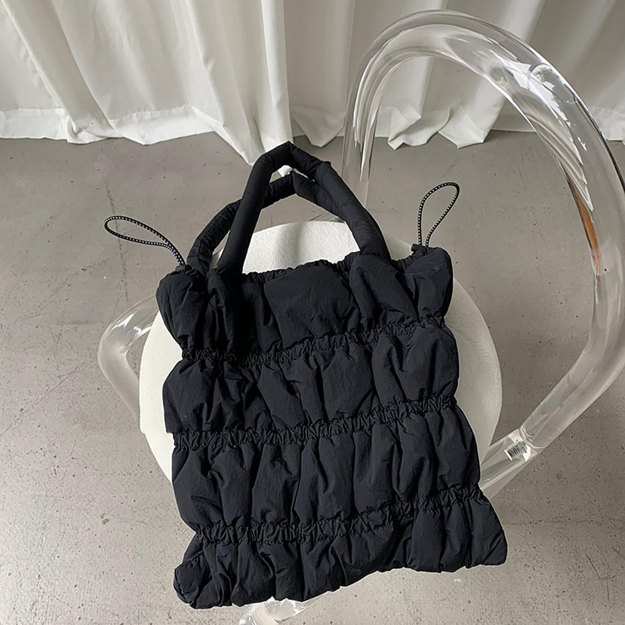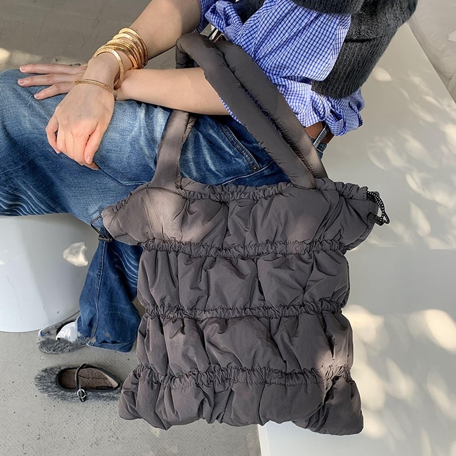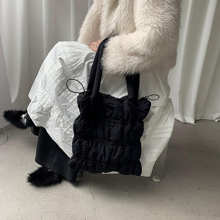 ギャザーデザインが印象的なバッグで、程よい存在感を演出。長めの持ち手で肩掛けしやすく、手持ちでもショルダーでも使える2way仕様感覚です。カラーはグリーン・グレー・ブラックの3色展開で、シンプルコーデのアクセントにもなる万能バッグ。カジュアルからきれいめまで幅広く合わせやすい、一つ持っておきたいアイテムです。 ................................................. ■ color green , gray , black ■ material ナイロン ■ size one size サイズ:37-44cm ※採寸方法により多少の誤差がある場合がございます [ 商品管理番号:j-0221 ] ▼ blanks人気ランキング https://www.blanksonline.shop/categories/3622302 ▼ 新商品・SALE情報をチェック! https://www.blanksonline.shop/ ▼ Instagram https://www.instagram.com/blanks.official/ ▶ ご購入時こちらを必ずお読みくださいませ 【 お買い物にあたってのご注意事項 】 https://www.blanksonline.shop/blog/2020/12/17/145916