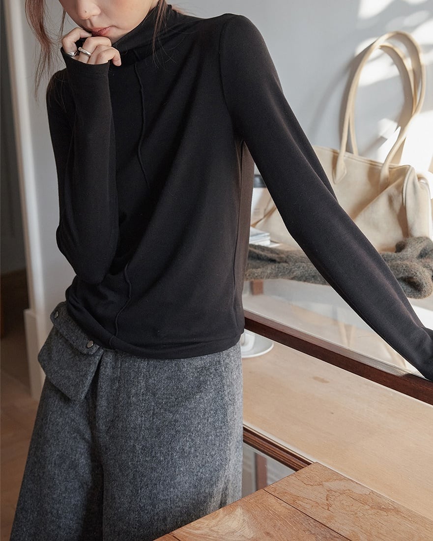 首元までしっかり包み込むハイネックデザインのカットソー。身体にほどよくフィットするスリムシルエットで、すっきりと上品な印象に仕上がります。ivory・gray・blackの3色展開で、どれもインナーとして重宝する万能カラー。ニットやジャケットの下に忍ばせるだけで、季節のレイヤードが洗練されます。 ................................................. ■ color ivory , gray , black ■ material ビスコース コットン アクリル スパンデックス ■ size S , M , L S: 肩幅 33cm 袖丈 63cm 胸囲 78cm 着丈 54cm M:肩幅 34cm 袖丈 64cm 胸囲 82cm 着丈 56cm L: 肩幅 35cm 袖丈 65cm 胸囲 86cm 着丈 58cm ※採寸方法により多少の誤差がある場合がございます ■ モデル身長:168cm [ 商品管理番号:j-0271 ] ▼ blanks人気ランキング https://www.blanksonline.shop/categories/3622302 ▼ 新商品・SALE情報をチェック! https://www.blanksonline.shop/ ▼ Instagram https://www.instagram.com/blanks.official/ ▶ ご購入時こちらを必ずお読みくださいませ 【 お買い物にあたってのご注意事項 】 https://www.blanksonline.shop/blog/2020/12/17/145916