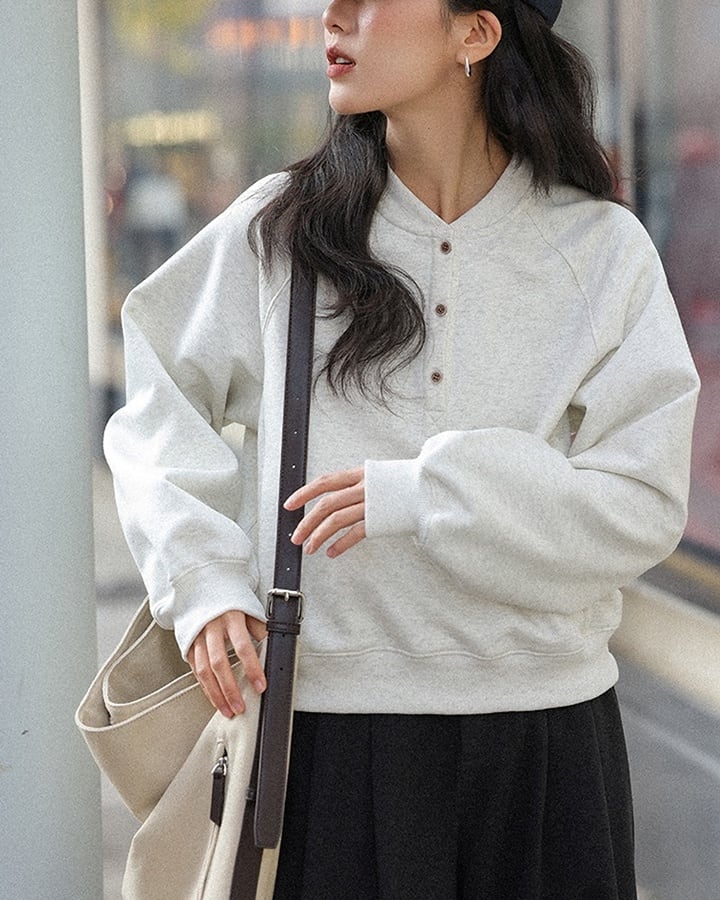 着回し力の高いプルオーバースウェット。首元の3ボタンが程よい抜け感を演出し、シンプルな中にも雰囲気のあるデザインに仕上がっています。ポケット付きでちょっとした外出にも便利。カジュアルダウンしたコーデに取り入れやすく、リラックス感のある着こなしを楽しめるアイテムです。 ................................................. ■ color ivory ■ material ポリエステル コットン ■ size S , M , L S: 袖丈 71cm 胸囲 108cm 着丈 55cm M:袖丈 72.5cm 胸囲 112cm 着丈 56.5cm L: 袖丈 74cm 胸囲 116cm 着丈 58cm ※採寸方法により多少の誤差がある場合がございます ■ モデル身長:166cm [ 商品管理番号:j-0282 ] ▼ blanks人気ランキング https://www.blanksonline.shop/categories/3622302 ▼ 新商品・SALE情報をチェック! https://www.blanksonline.shop/ ▼ Instagram https://www.instagram.com/blanks.official/ ▶ ご購入時こちらを必ずお読みくださいませ 【 お買い物にあたってのご注意事項 】 https://www.blanksonline.shop/blog/2020/12/17/145916