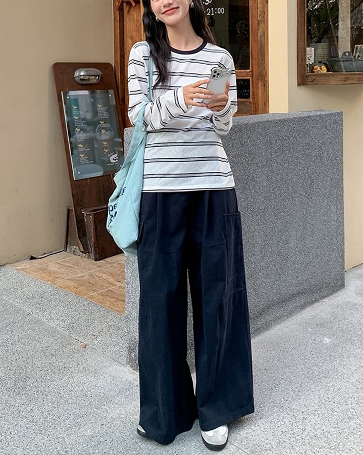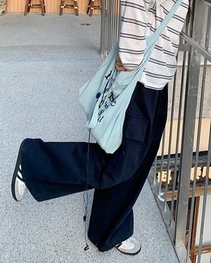 程よくラフな雰囲気が魅力のネイビーワークパンツ。ゆったりとしたワイドシルエットで動きやすく、リラックスした履き心地を実現します。落ち着いたネイビーカラーがカジュアルになりすぎず、きれいめトップスとも好相性。デイリーから休日スタイルまで幅広く活躍する一本です。 ................................................. ■ color navy ■ material コットン ■ size S , M , L S :ウエスト 65-72cm ヒップ 94cm もも周り 72cm 着丈 99.5cm M:ウエスト 69-76cm ヒップ 98cm もも周り 74cm 着丈 100.5cm L :ウエスト 73-80cm ヒップ 102cm もも周り 76cm 着丈 101.5cm ※採寸方法により多少の誤差がある場合がございます ■ モデル身長:166cm [ 商品管理番号:j-0297 ] ▼ blanks人気ランキング https://www.blanksonline.shop/categories/3622302 ▼ 新商品・SALE情報をチェック! https://www.blanksonline.shop/ ▼ Instagram https://www.instagram.com/blanks.official/ ▶ ご購入時こちらを必ずお読みくださいませ 【 お買い物にあたってのご注意事項 】 https://www.blanksonline.shop/blog/2020/12/17/145916