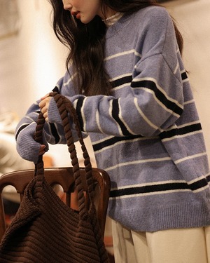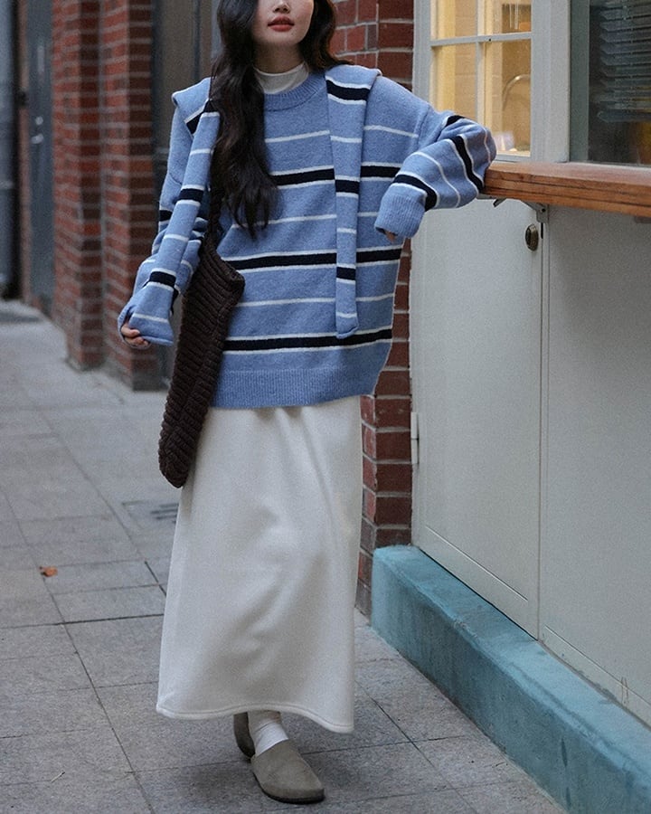 ボーダーニットに、同柄のニットフードがセットになったデザイン性の高い一枚。ゆったりとしたシルエットでリラクシーな着心地ながら、フードを合わせることでカジュアル感もプラスできます。単体でもセットでも使え、コーデの幅を広げてくれる万能アイテムです。