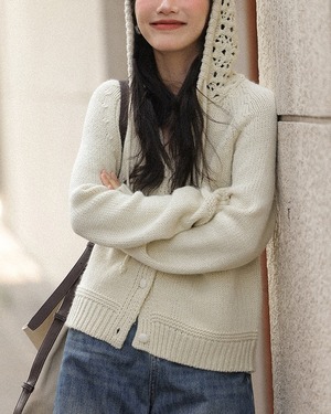 ほどよいサイズ感とラグランスリーブで、自然とこなれた雰囲気が出るフードカーディガン。アイボリーの柔らかい色味がどんなカラーとも相性よく、着まわし力抜群です。ボタン仕様で開けても閉めてもバランスが取りやすく、軽い羽織りとして季節の変わり目にも活躍。リラックスしながらもすっきり見える、万能なデイリーニット。 ................................................. ■ color ivory ■ material アクリル ■ size S , M , L S: 袖丈 67cm 胸囲 100cm 着丈 56cm M:袖丈 69cm 胸囲 104cm 着丈 57cm L: 袖丈 71cm 胸囲 108cm 着丈 58cm ※採寸方法により多少の誤差がある場合がございます ■ モデル身長:166cm [ 商品管理番号:j-0311 ] ▼ blanks人気ランキング https://www.blanksonline.shop/categories/3622302 ▼ 新商品・SALE情報をチェック! https://www.blanksonline.shop/ ▼ Instagram https://www.instagram.com/blanks.official/ ▶ ご購入時こちらを必ずお読みくださいませ 【 お買い物にあたってのご注意事項 】 https://www.blanksonline.shop/blog/2020/12/17/145916