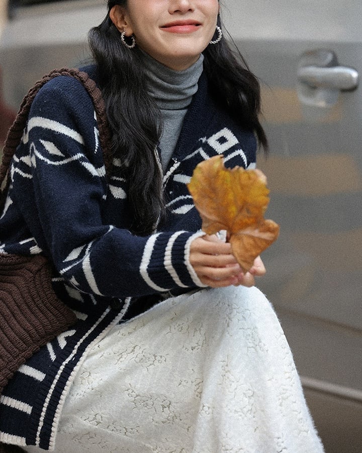 白のパターンが映えるネイビーカーディガンは、1枚でコーデが決まるデザイン性が魅力。ほどよく大きいサイズ感で、肩を落としたゆるっとしたシルエットが今っぽい雰囲気に。ボタンアップなので着こなしの幅も広がり、開けても閉めても使いやすいアイテムです。デイリーにさらっと羽織れる、気軽で可愛いカーディガン。 ................................................. ■ color navy ■ material ポリエステル アクリル ナイロン ウール スパンデックス ■ size S , M , L S: 袖丈 63cm 胸囲 110cm 着丈 64cm M:袖丈 65cm 胸囲 114cm 着丈 65cm L: 袖丈 67cm 胸囲 118cm 着丈 66cm ※採寸方法により多少の誤差がある場合がございます ■ モデル身長:166cm [ 商品管理番号:j-0312 ] ▼ blanks人気ランキング https://www.blanksonline.shop/categories/3622302 ▼ 新商品・SALE情報をチェック! https://www.blanksonline.shop/ ▼ Instagram https://www.instagram.com/blanks.official/ ▶ ご購入時こちらを必ずお読みくださいませ 【 お買い物にあたってのご注意事項 】 https://www.blanksonline.shop/blog/2020/12/17/145916