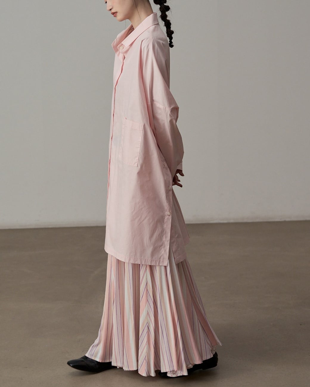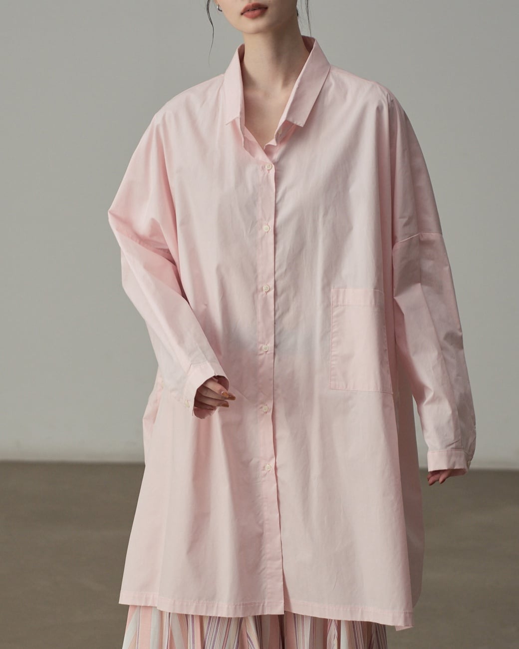 一枚で様々な着こなしが叶うオーバーサイズシャツ。ゆったりとしたフォルムが抜け感を演出し、レイヤードスタイルにも最適です。ロングブーツと合わせればワンピース風にもアレンジ可能。ピンク、ライトブルー、ブラックのベーシックかつ華やかなカラー展開で、ロングシーズン活躍する主役アイテムです。