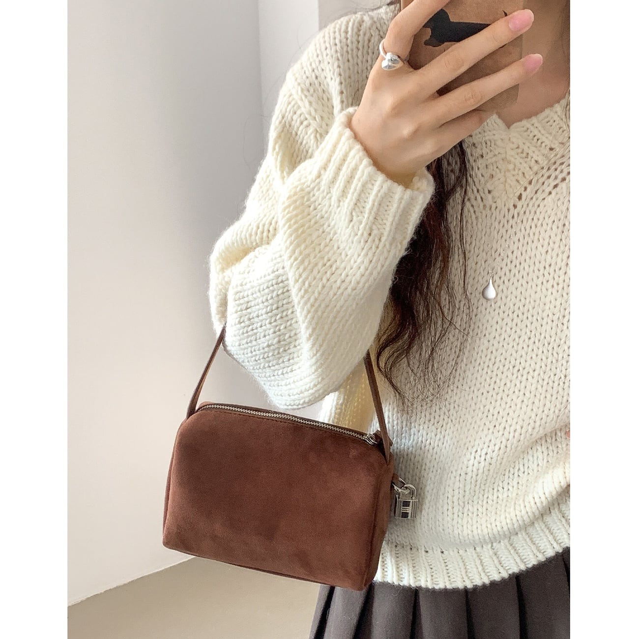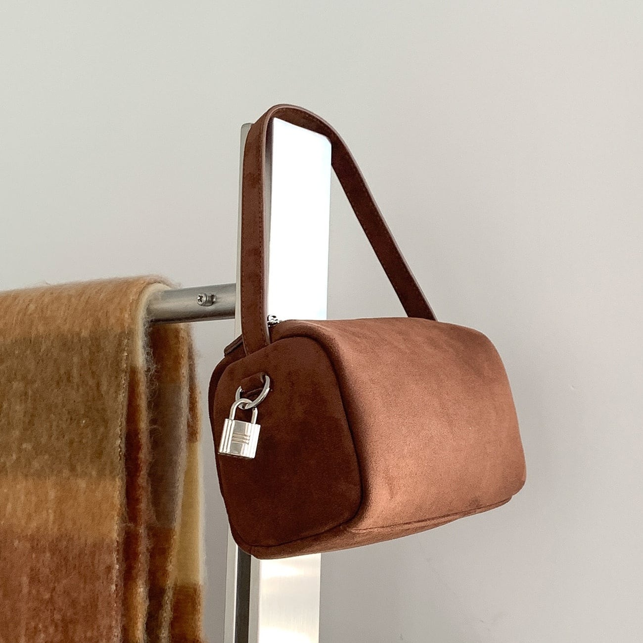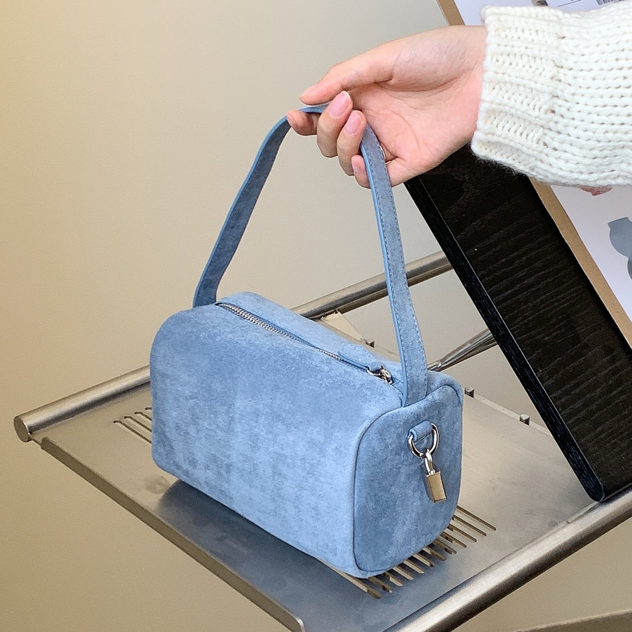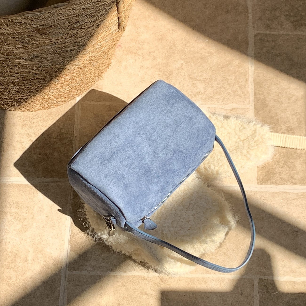 シンプルで使いやすいデザインのバッグ。ハンドバッグとして持てる程よいサイズ感で、きれいめにもカジュアルにも合わせやすいのが魅力です。マチ付き仕様のため、必要な荷物がしっかり収まり普段使いに最適。毎日のスタイリングに自然と馴染む、ブルー、ライトブラウン、ブラウン、ブラックの5色展開です。