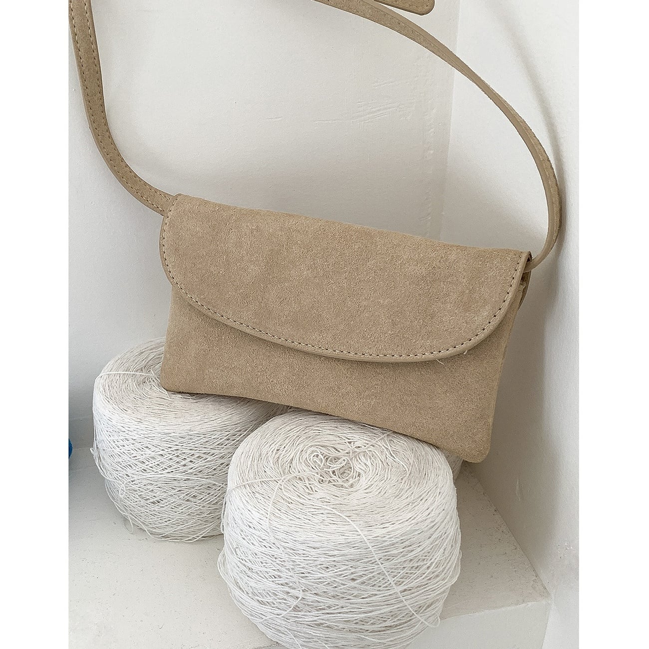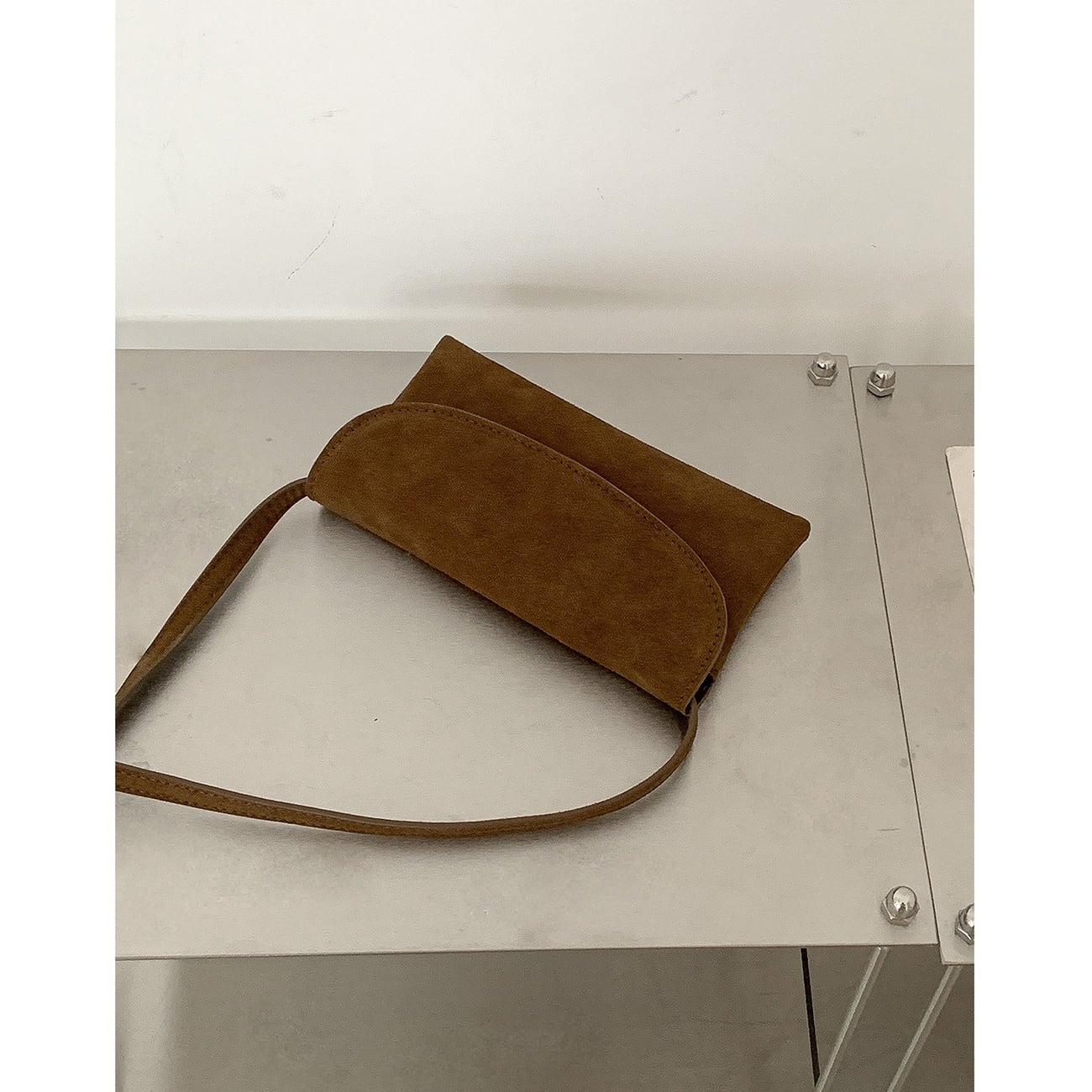 コーディネートに自然に溶け込む、フェイクスウェード素材のコンパクトバッグ。長めベルトで斜め掛けができ、カジュアルにもきれいめにも合わせやすいデザインです。小さめサイズでアクセサリー感覚で取り入れられるのもポイント。幅広いスタイルに対応し、アイボリー、ピンク、レッド、ブラウン、ブラックの5色展開です。