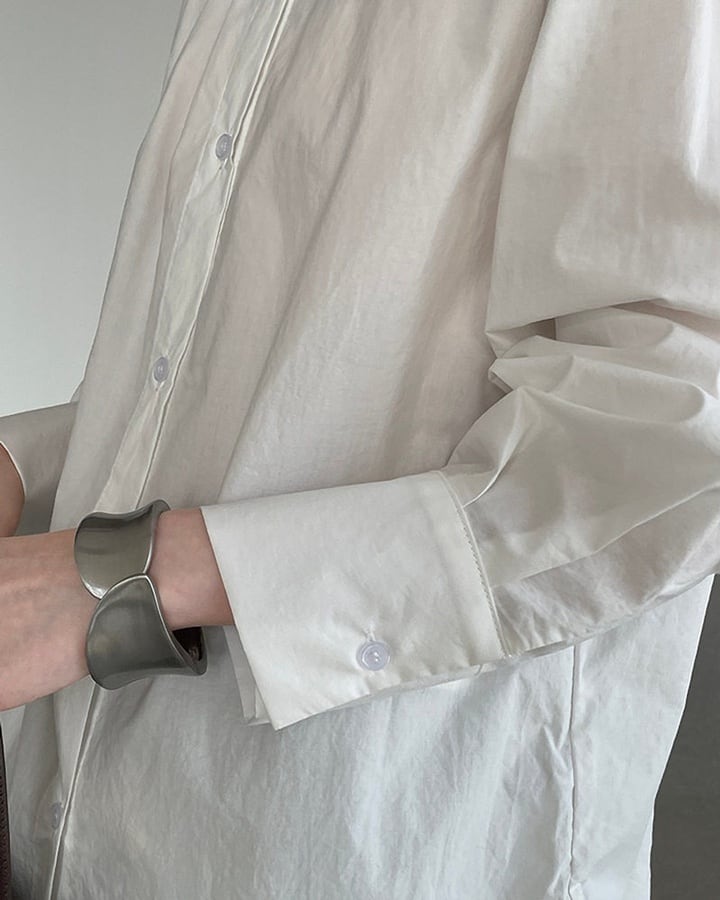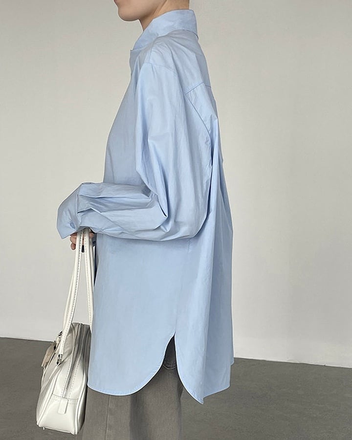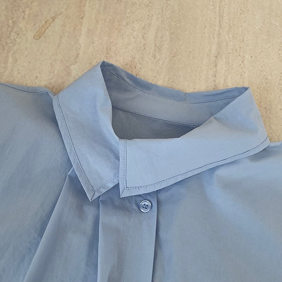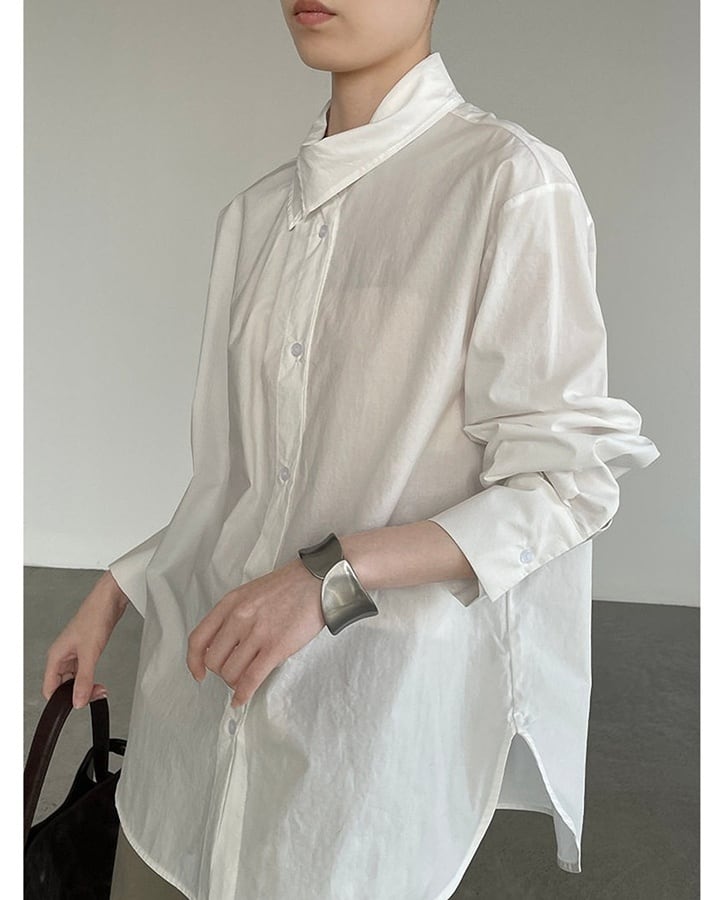 襟の位置をずらしたようなアシンメトリーデザインが印象的なシャツ。シンプルな中に個性が光り、着るだけでモードな雰囲気を演出します。ホワイトとライトブルーの2色展開で、クリーンにも落ち着いた印象にも対応。主張しすぎないデザインなので、デイリーコーデにも取り入れやすい一枚です。