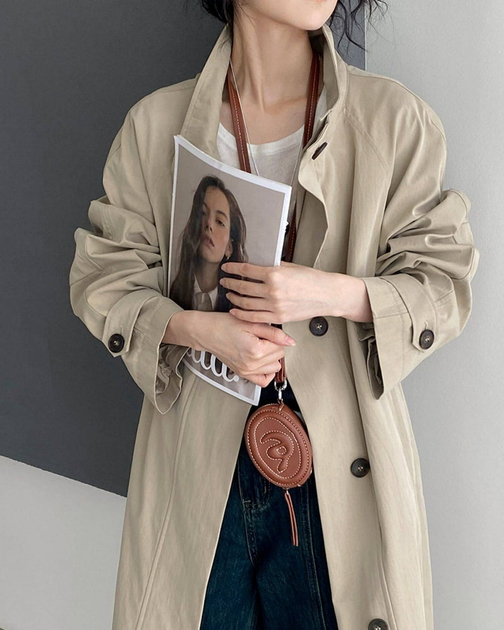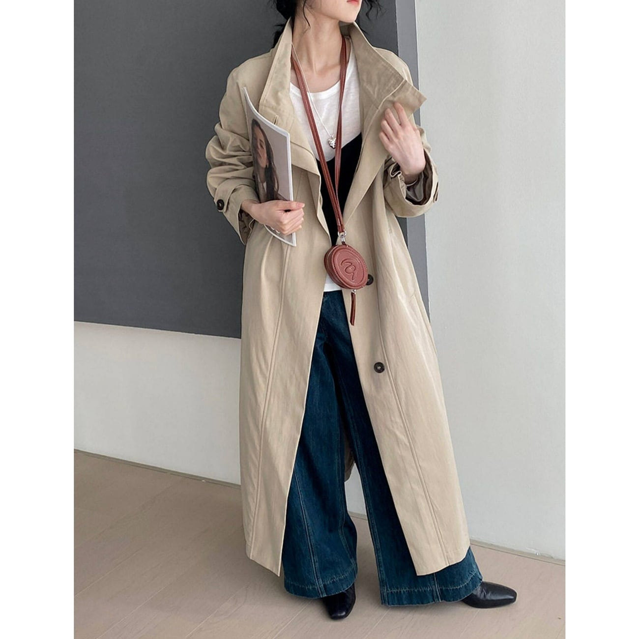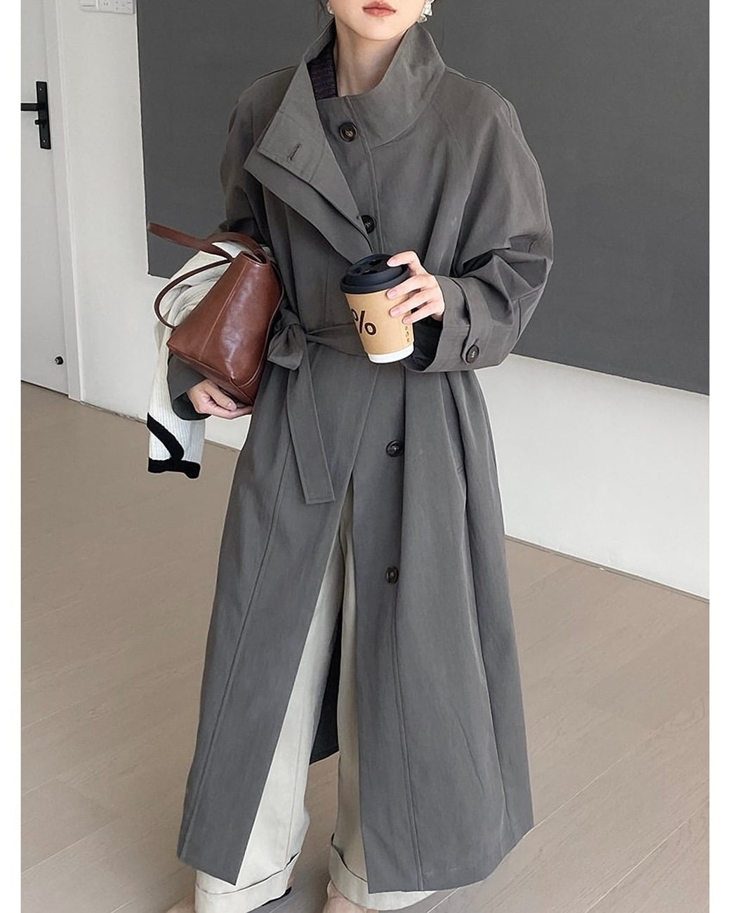 シンプルさが魅力のスタンドカラーコート。ロング丈がさりげなく体型をカバーし、羽織るだけで大人の雰囲気に。beigeは柔らかく女性らしい印象、dark grayはクールで洗練された印象を与えます。無駄のないデザインでパンツにもスカートにも好相性。デイリーに活躍する着回し力の高い一着です。