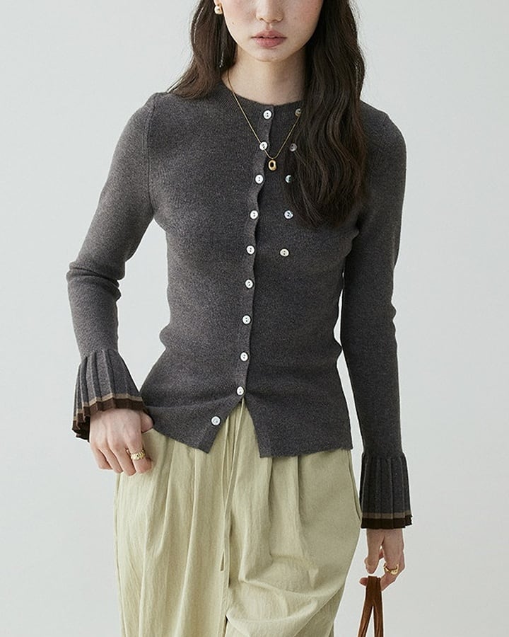 pleats sleeve cardigan k-0004