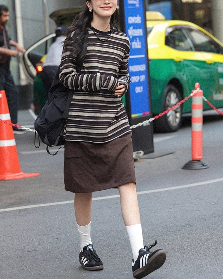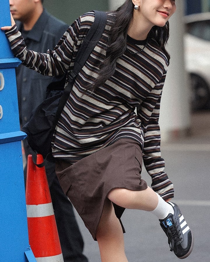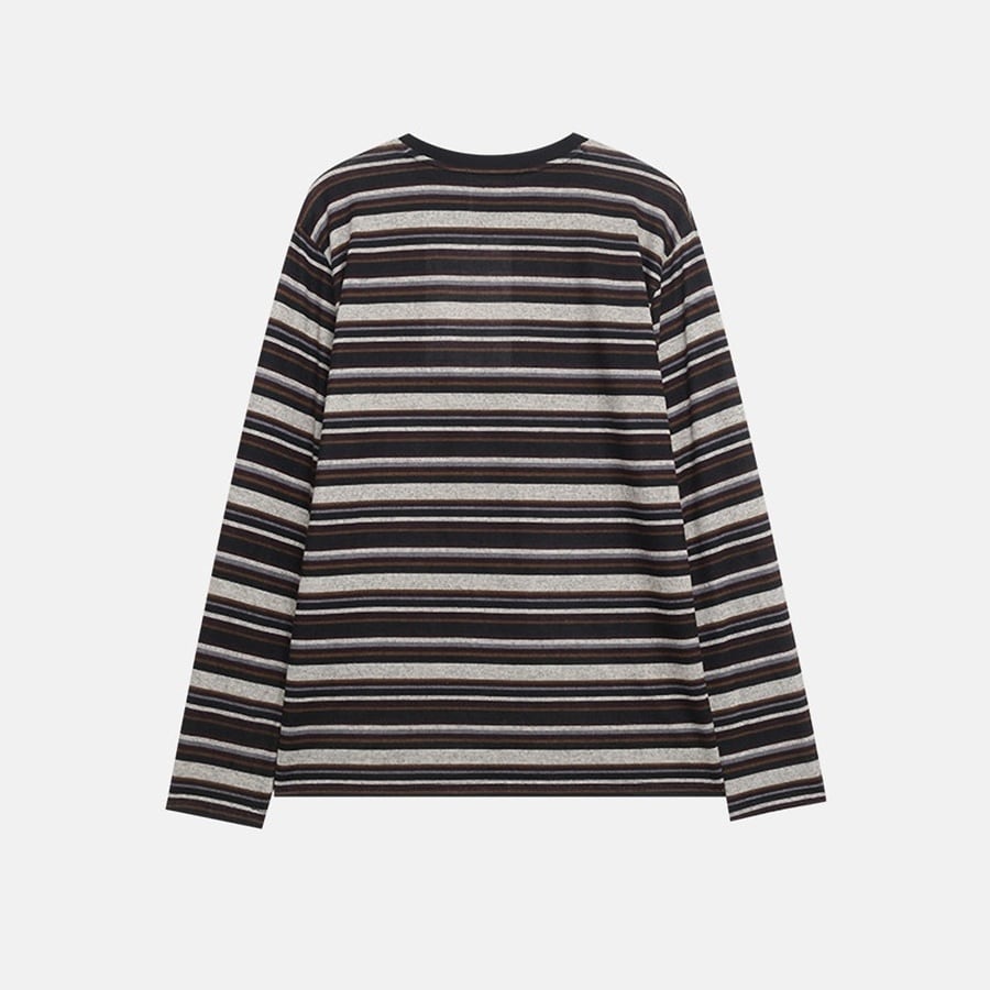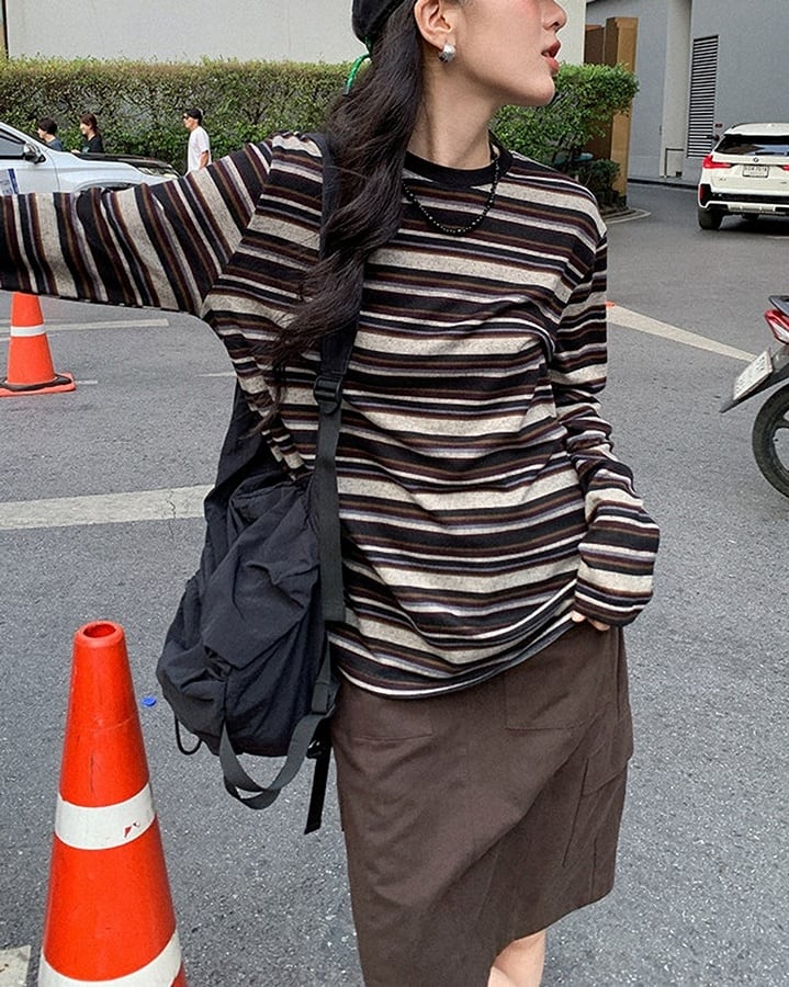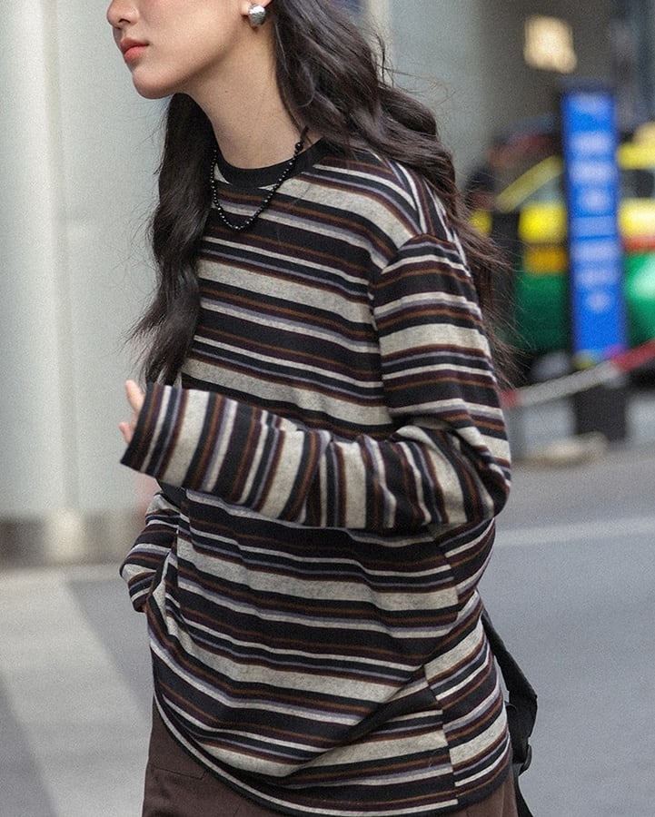 カジュアルスタイルにぴったりなボーダー柄の長袖カットソー。ゆったりとしたシルエットでリラックス感のある着心地が魅力です。ベーシックなクルーネックデザインで顔まわりはすっきりとした印象に。シンプルながらコーディネートのアクセントになるボーダー柄で、デニムやスカートなどさまざまなアイテムと合わせやすく、デイリーに活躍する一枚です。
