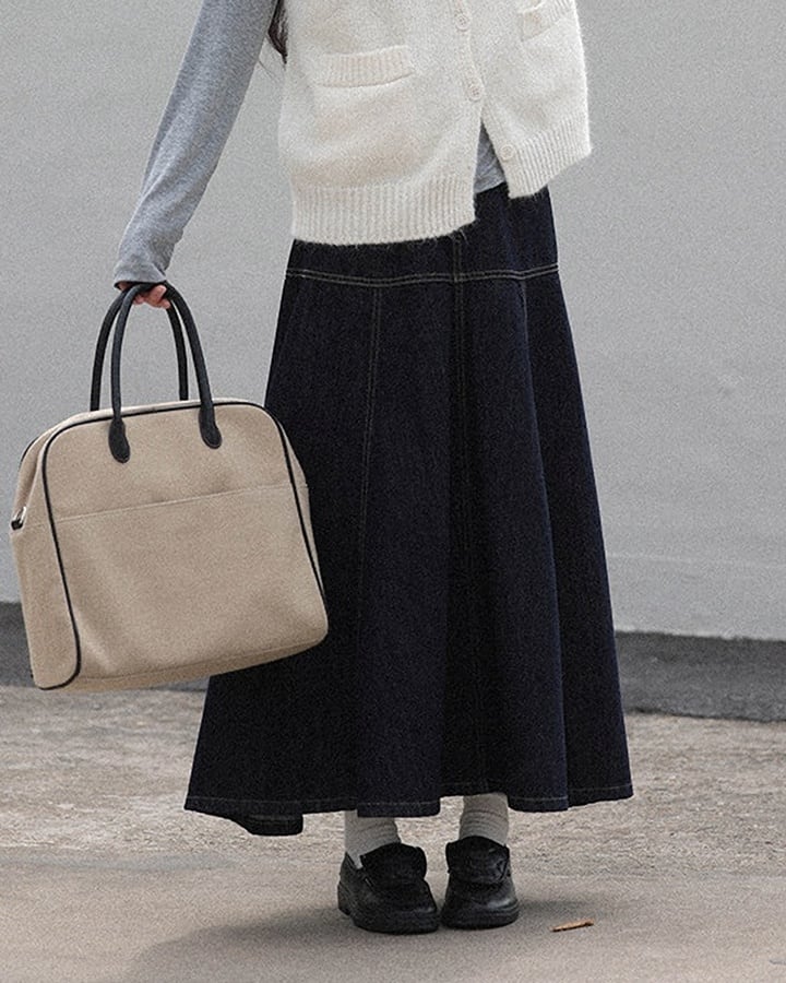 深みのあるインディゴカラーが上品な印象を与えるロングスカート。程よく広がるややフレアシルエットが、動きに合わせてきれいなラインを描き、女性らしいスタイルを演出します。ロング丈で落ち着いた雰囲気があり、カジュアルにもきれいめにも合わせやすいデザイン。Tシャツやニット、ブラウスなどさまざまなトップスと相性が良く、幅広いコーディネートに取り入れやすいアイテムです。