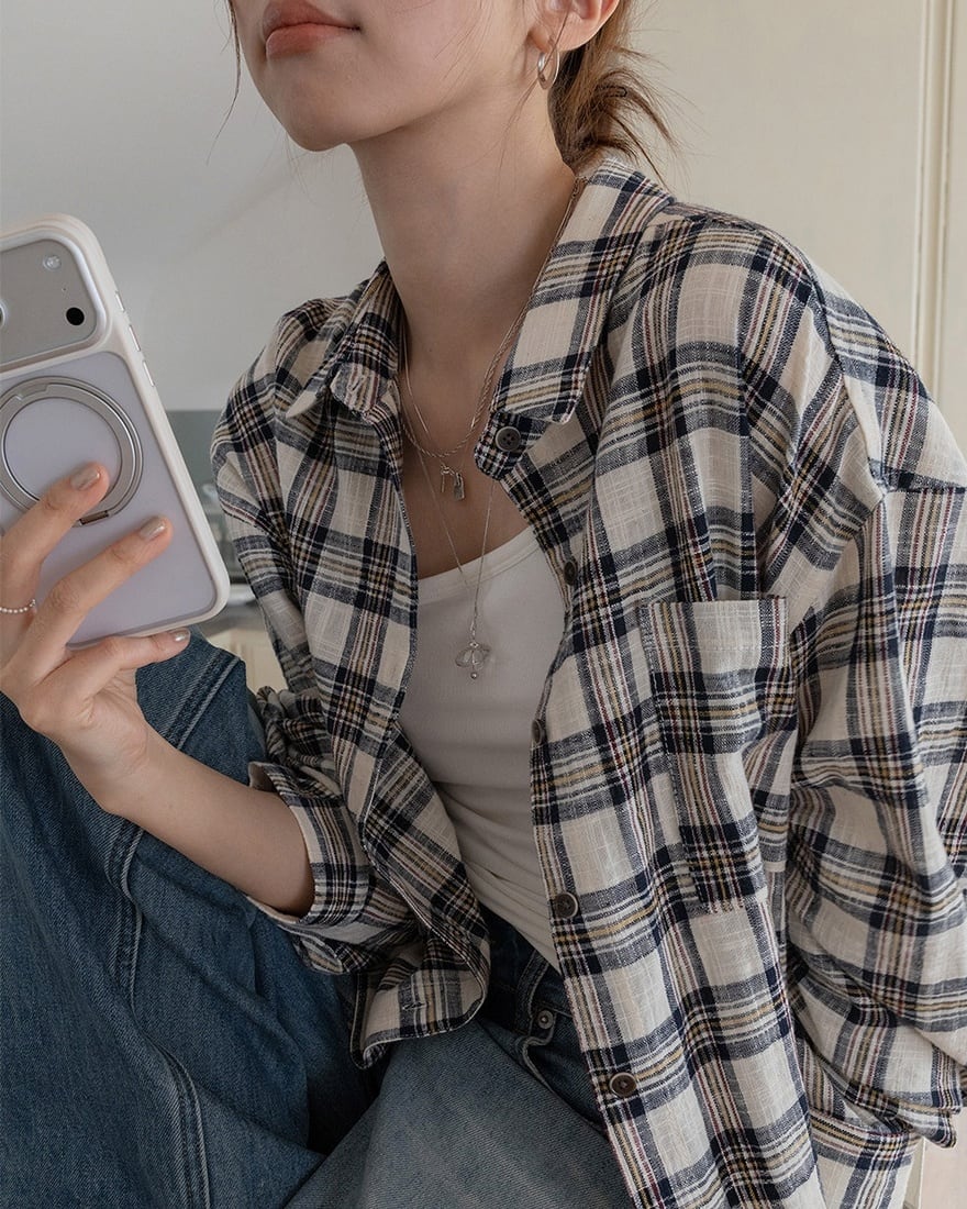 カジュアルスタイルの定番として長く愛用できるオーバーチェックシャツ。ゆったりとしたサイズ感でリラックスして着られ、ラフな雰囲気を演出します。前を開けて羽織として使うのもおすすめ。シンプルなコーディネートにも自然に馴染むデイリーアイテムです。