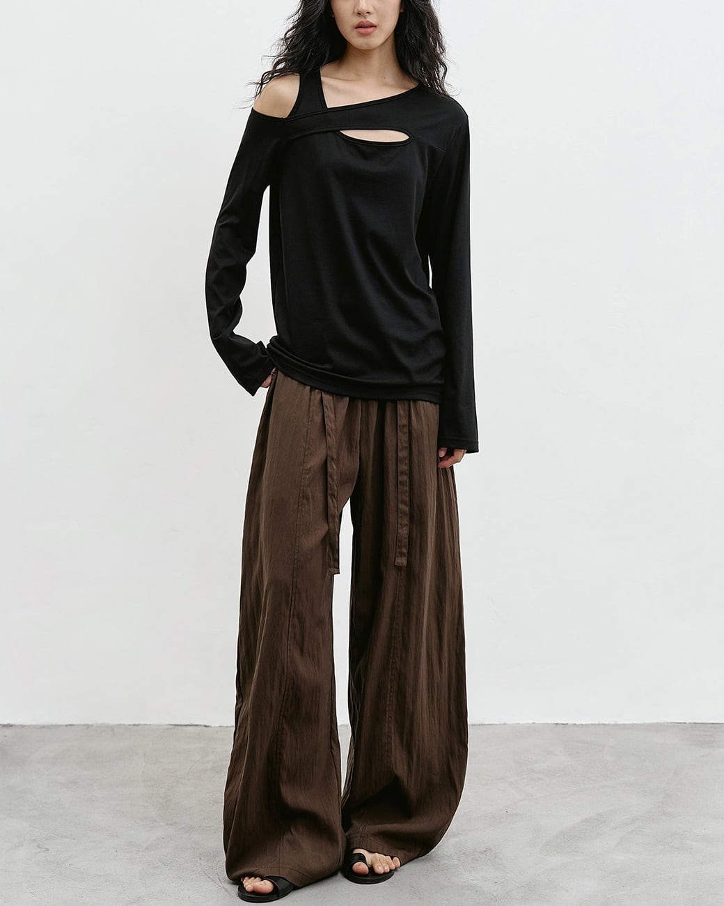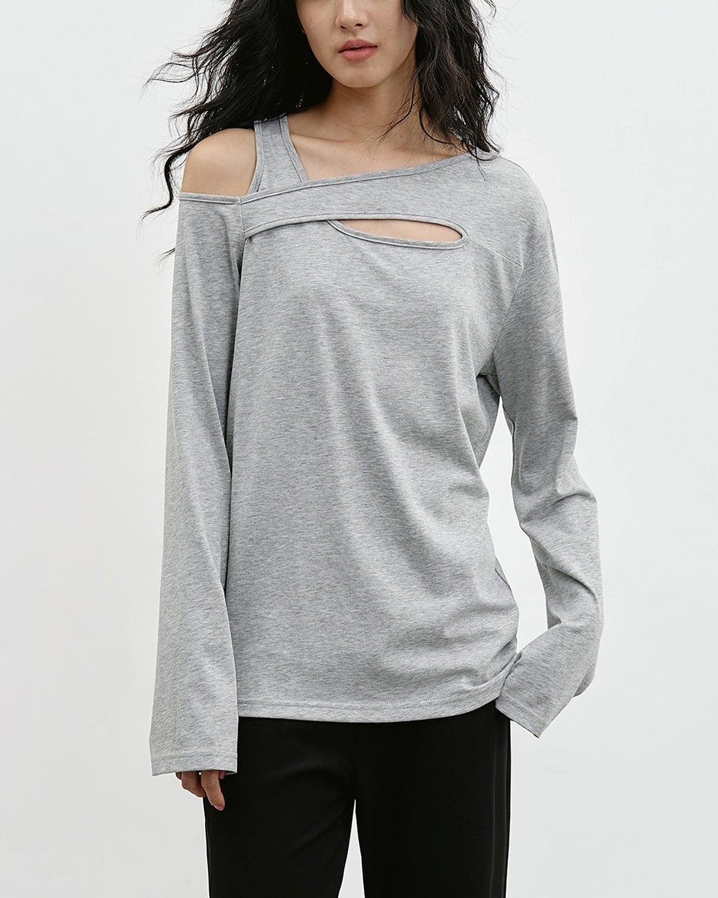 女性らしさを引き立てるカットソー。オフショルダーと首元はカットオフデザインで、程よい抜け感とこなれた印象を演出します。シンプルながらもスタイリングのアクセントになる一枚。デニムやスカートなど幅広いコーディネートに合わせやすく、日常の着こなしをさりげなくアップデートしてくれます。カラーはグレー、ブラックの2色展開。