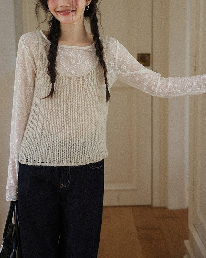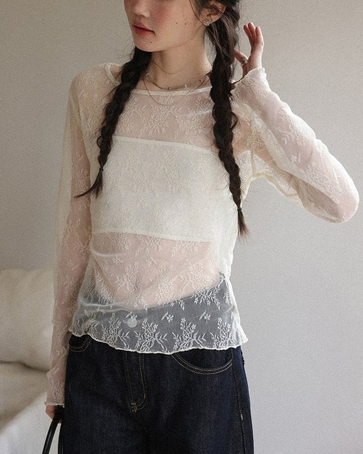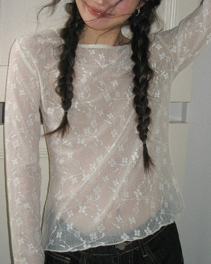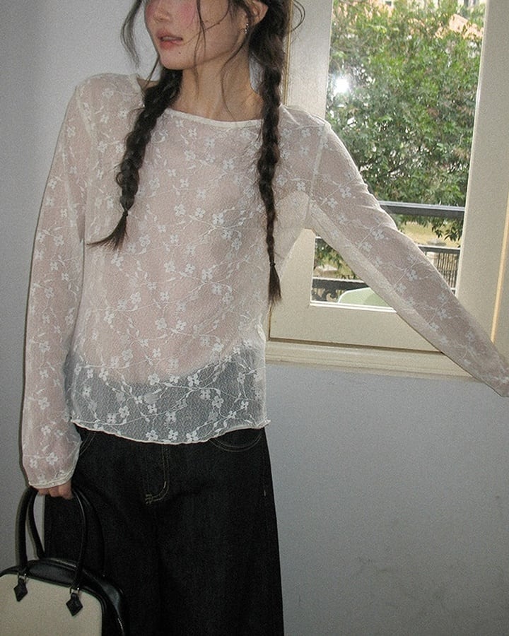 sheer flower pattern top k-0034