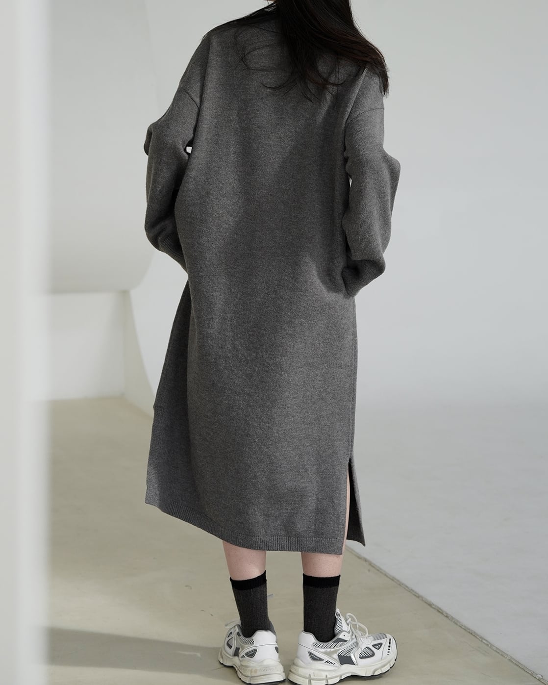 オープンカラーネックでゆったりとしたシルエットが魅力のニットワンピース。シックな中に今っぽい抜け感を叶える一着です。しっかりとした生地感で暖かさも◎