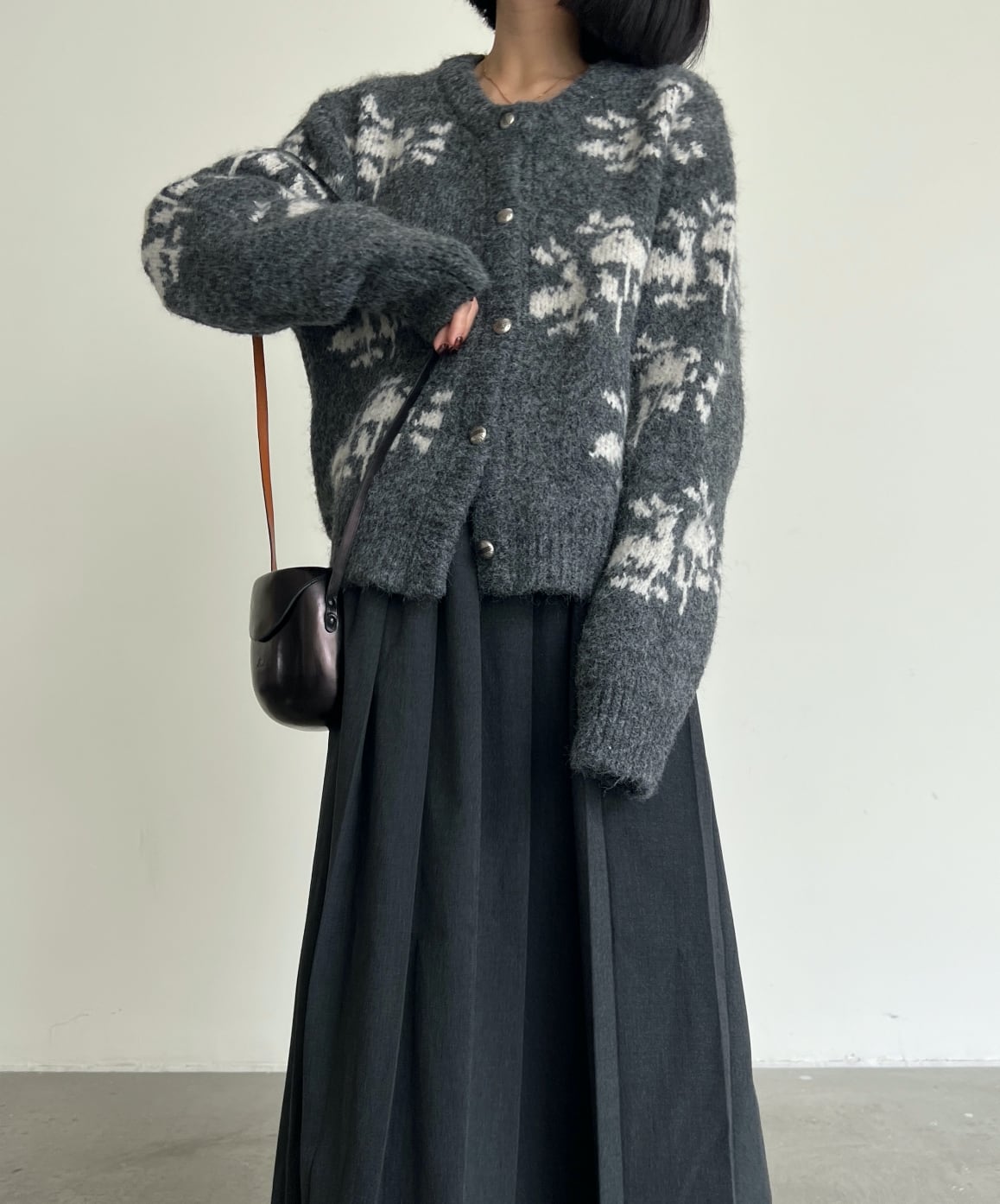 暖かみのある風合いが魅力のクルーネックカーディガン。